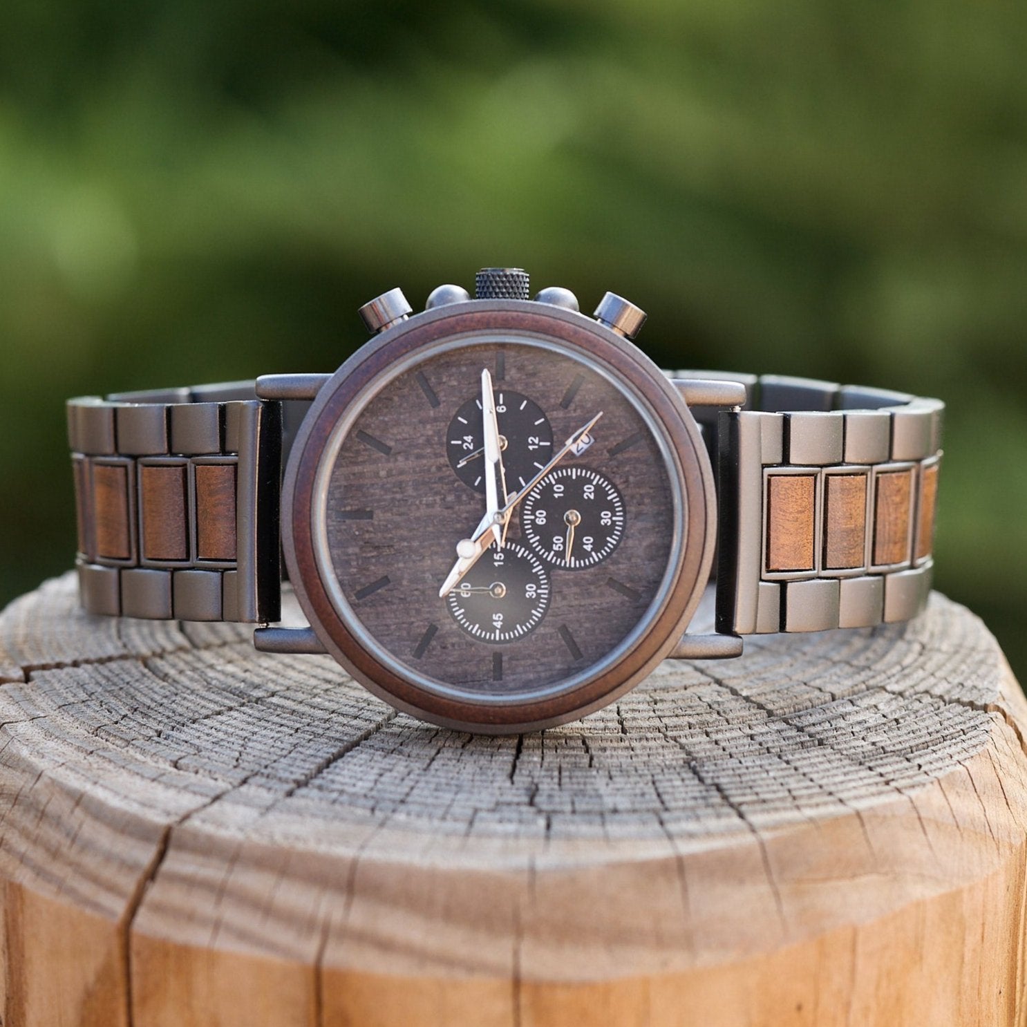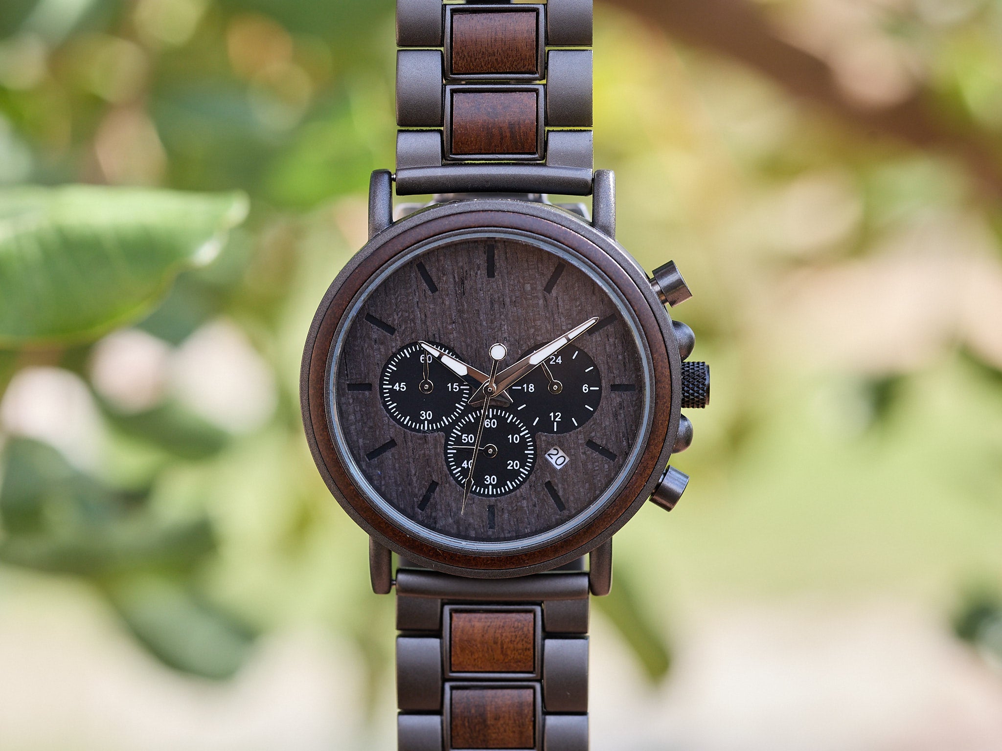 The Arthur Wooden Watch combines classic design with modern durability in the perfect balance of wood and stainless steel. This thoughtful pairing creates a robust yet luxurious look that’s sophisticated enough for the office and versatile enough for outdoor adventures. From important meetings to leisurely weekends, the Arthur is your steadfast companion.