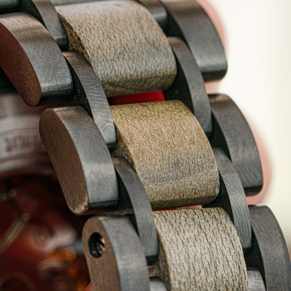 The Atlas Maple Grey Marble automatic men’s watch showcases a natural grey marble dial with a glass opening that reveals the heart of its self-winding movement. Roman numerals and lance-style hands add a classic edge to its modern silhouette. A grey maple wood bezel surrounds the dial, while a five-link band made of gunmetal stainless steel and matching maple wood completes the look. This piece is a perfect example of wood marble watches that balance durability with design. For those who want a timeless marble watch for men, it offers both character and functionality. With its unique blend of materials and movement, it remains a standout choice in wooden watches for men.