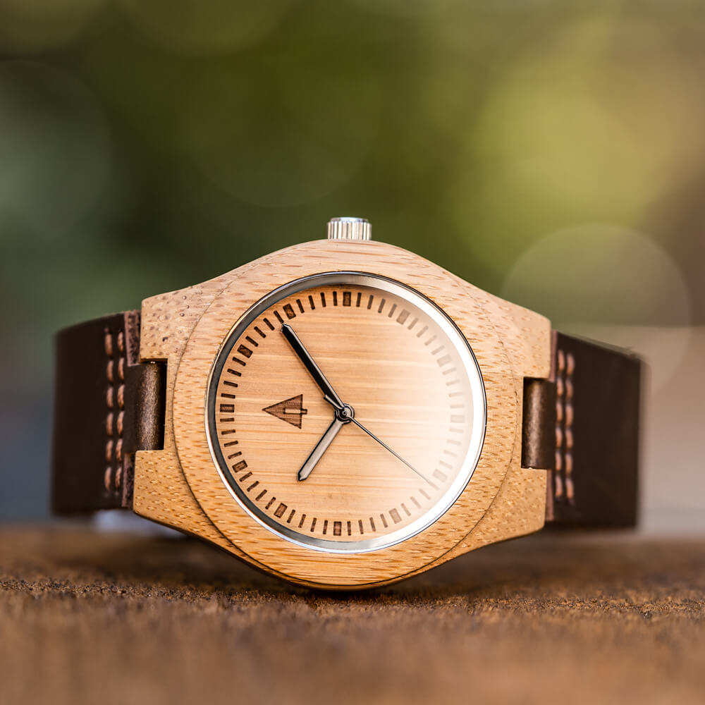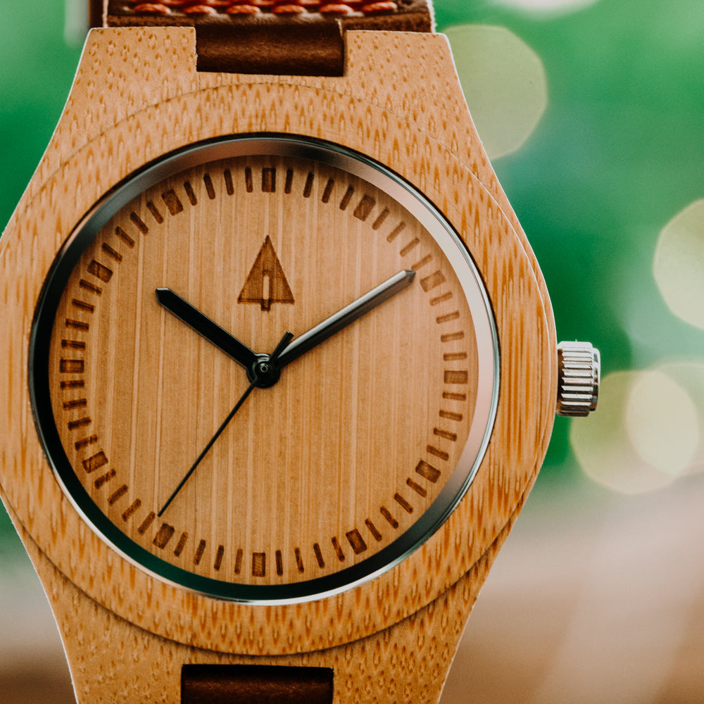 The Classic Boyd Small is equipped with high-quality Japanese quartz movement and a 40mm bamboo wood case detailed with a genuine leather strap. Its streamlined style and warm tones make it a luxury wooden watch perfect for everyday wear. Designed for the casual outdoor adventurist, this piece lets you carry a little slice of nature wherever you go. For those drawn to thoughtful craftsmanship, Treehut’s wooden watches for women bring timeless simplicity to the wrist.