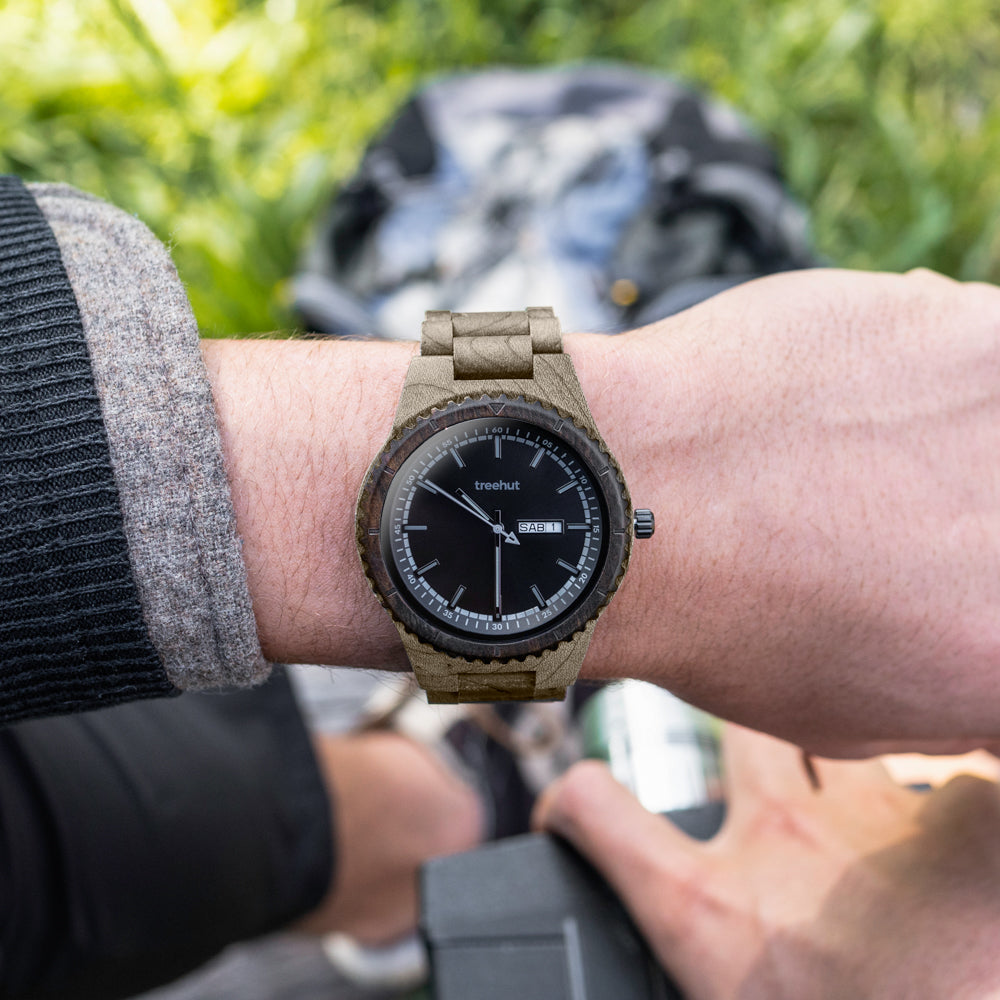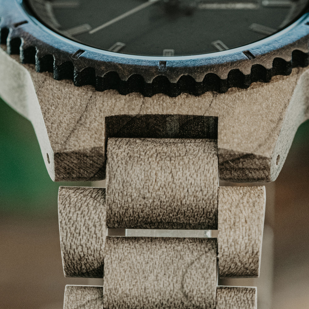The Classic Collection sits at the core of the brand – reliable, versatile, and always ready. The Classic Day-Date Silver Maple Black carries that spirit forward. Made from grey maple and ebony, it features a double-layered case, dimensional dial, and slim grey markers. Like all well-made wood watches, it balances form and function without overcomplicating either.
