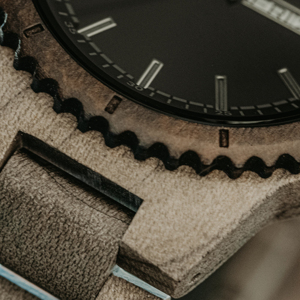 The day-date feature adds everyday practicality, while the layered wood textures give it a quiet presence. It’s a natural fit for those interested in creating a custom watch that feels unique but wearable. Our personalized wooden watches reflect craftsmanship in every detail. If you’re drawn to custom made watches that blend utility with individuality, this one delivers.