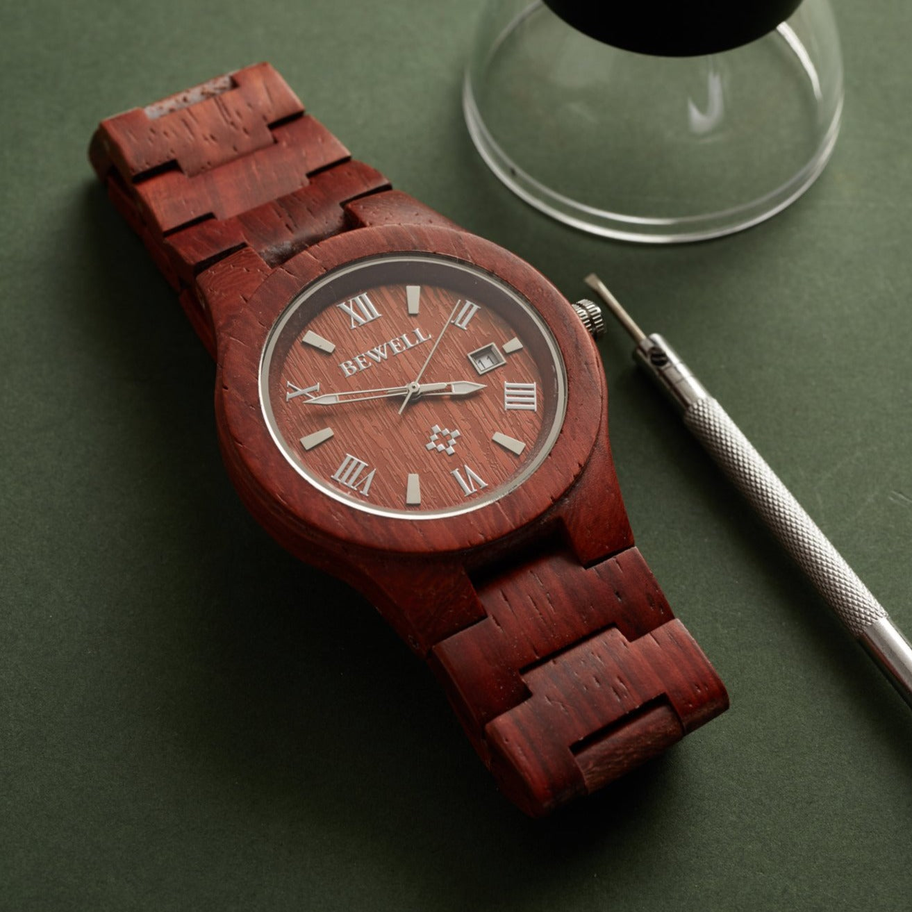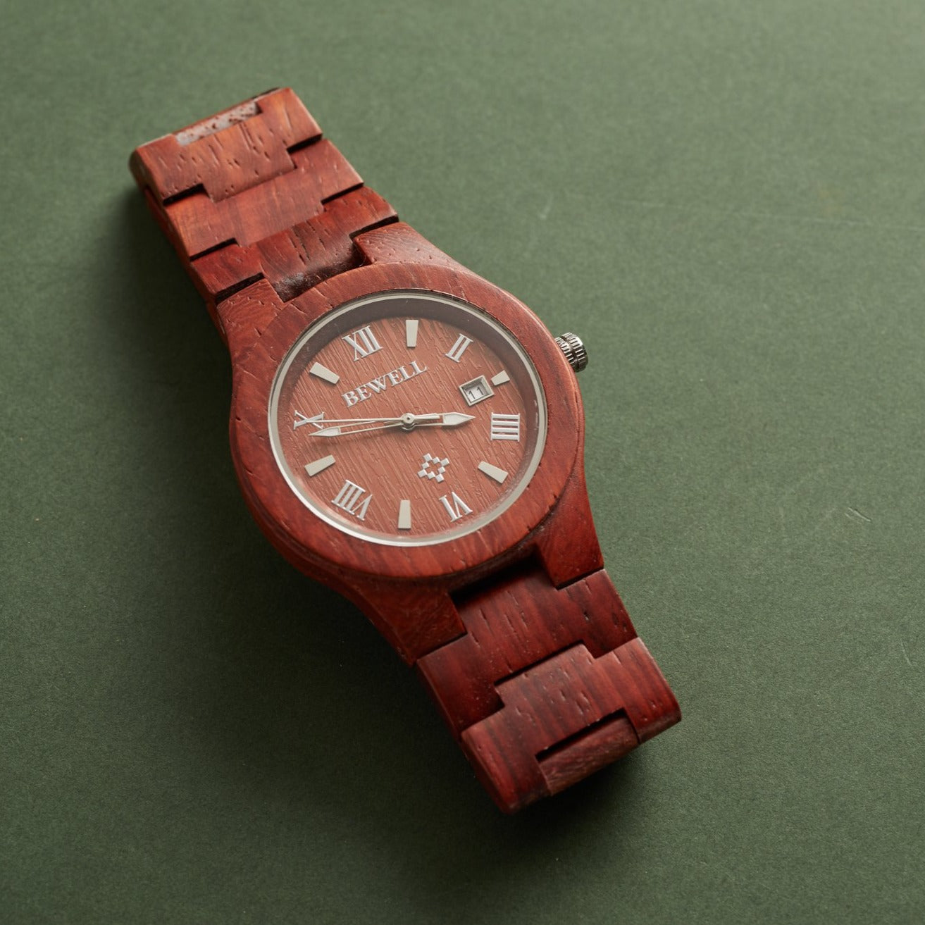 The Red Sandalwood Cupid Minimalist wood watch is made from 100% natural red sandalwood. Japanese movement and the wood strap is adjustable in size.