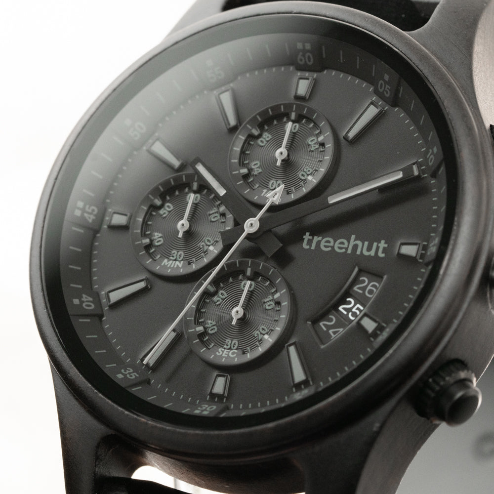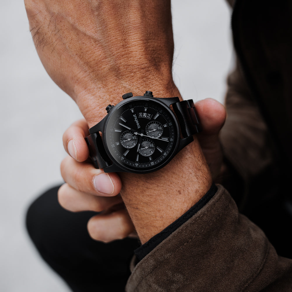 The Dubline Chrono Ebony Monochrome stands out with an all-black aesthetic: a bold ebony wood case, matted black dial, and sleek black pusher. It’s a striking example of chronograph watches for men that embrace simplicity without sacrificing depth. Thoughtfully constructed, this piece is uncluttered, functional, and designed for the modern wardrobe.