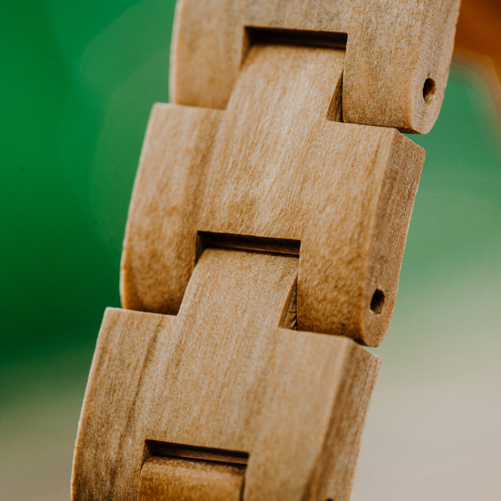 Each dial has its own pattern and tone, making every watch feel like a one-off. For those drawn to natural textures and clean design, the Emma Pearl Olive Frost reflects the beauty of simple forms. A thoughtful addition to any rotation of luxury wooden watches.