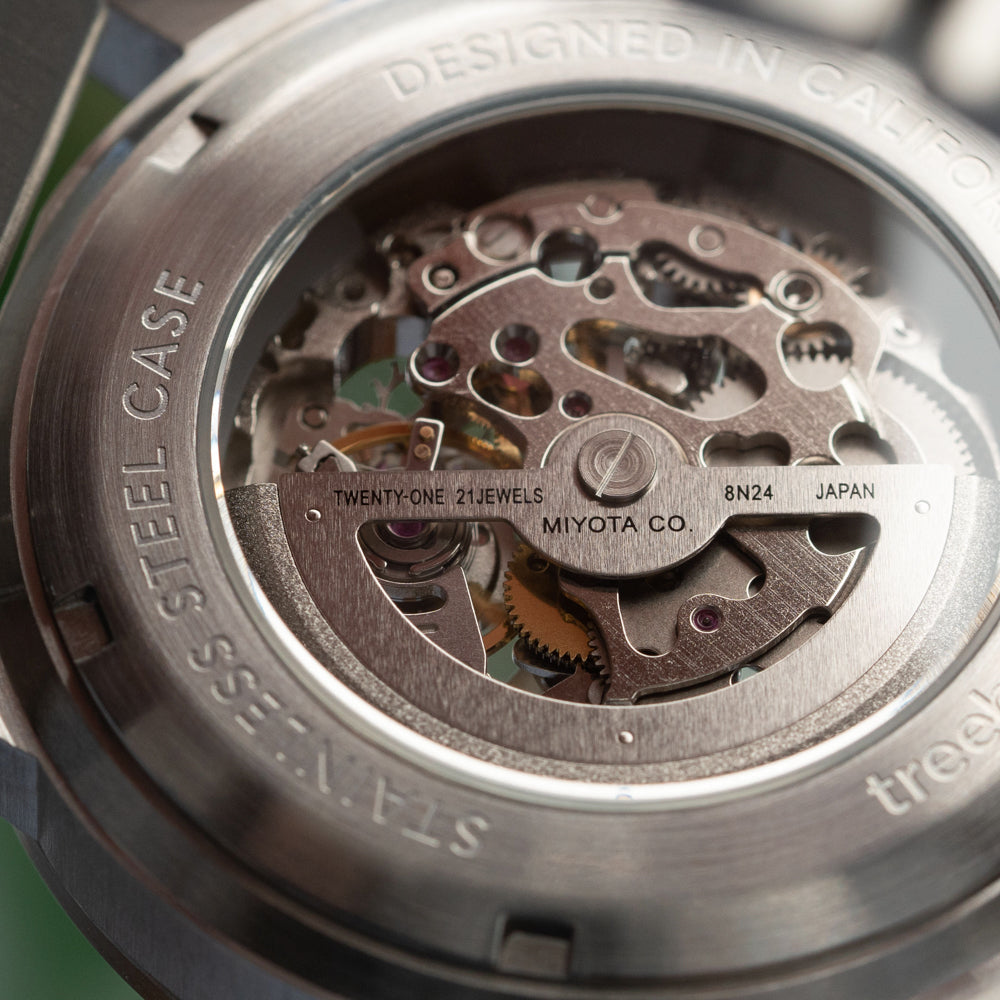 The Immortal Koa Automatic is an automatic watch for men that blends mechanical engineering with organic design. At its core is the Miyota 8N24 21-jewel automatic movement, visible through the exhibition case back. It offers a 42-hour power reserve, allowing you to watch time move, uninterrupted.