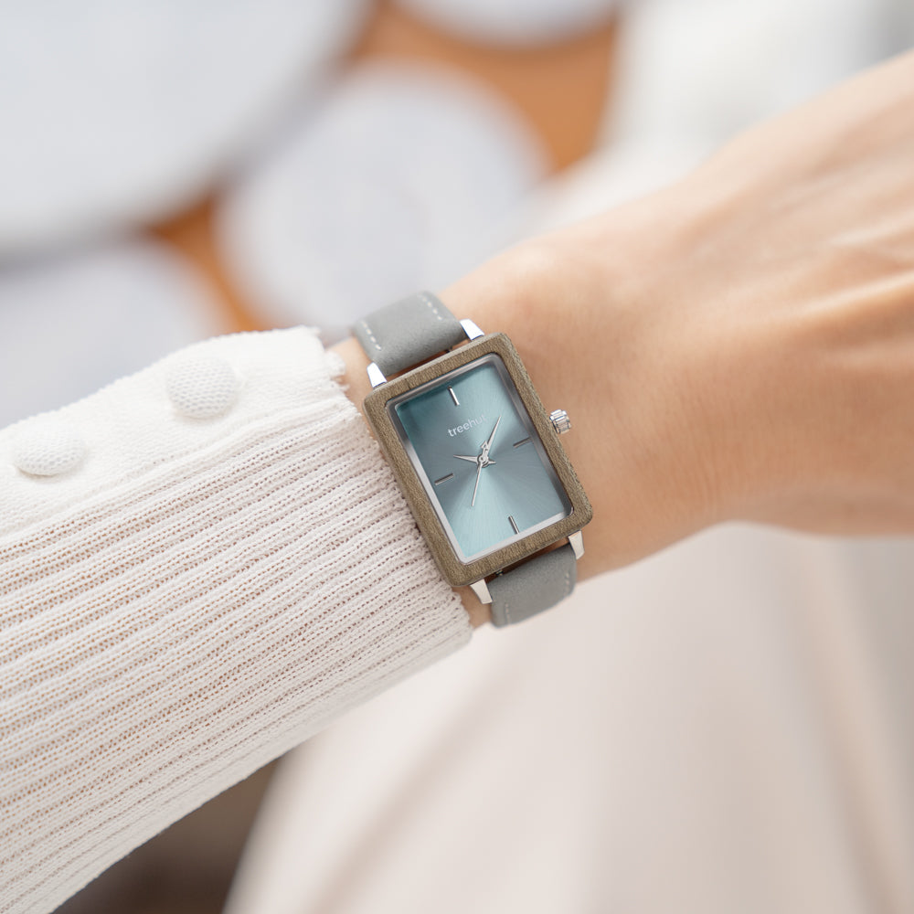 Paired with a soft grey leather strap, this women’s wooden watch offers a balance of natural texture and modern elegance. Ideal for those who prefer understated design, it’s a versatile choice that complements both casual and professional looks. Among silver watches for women, the Lola stands out for its unique mix of wood, leather, and sleek detailing.