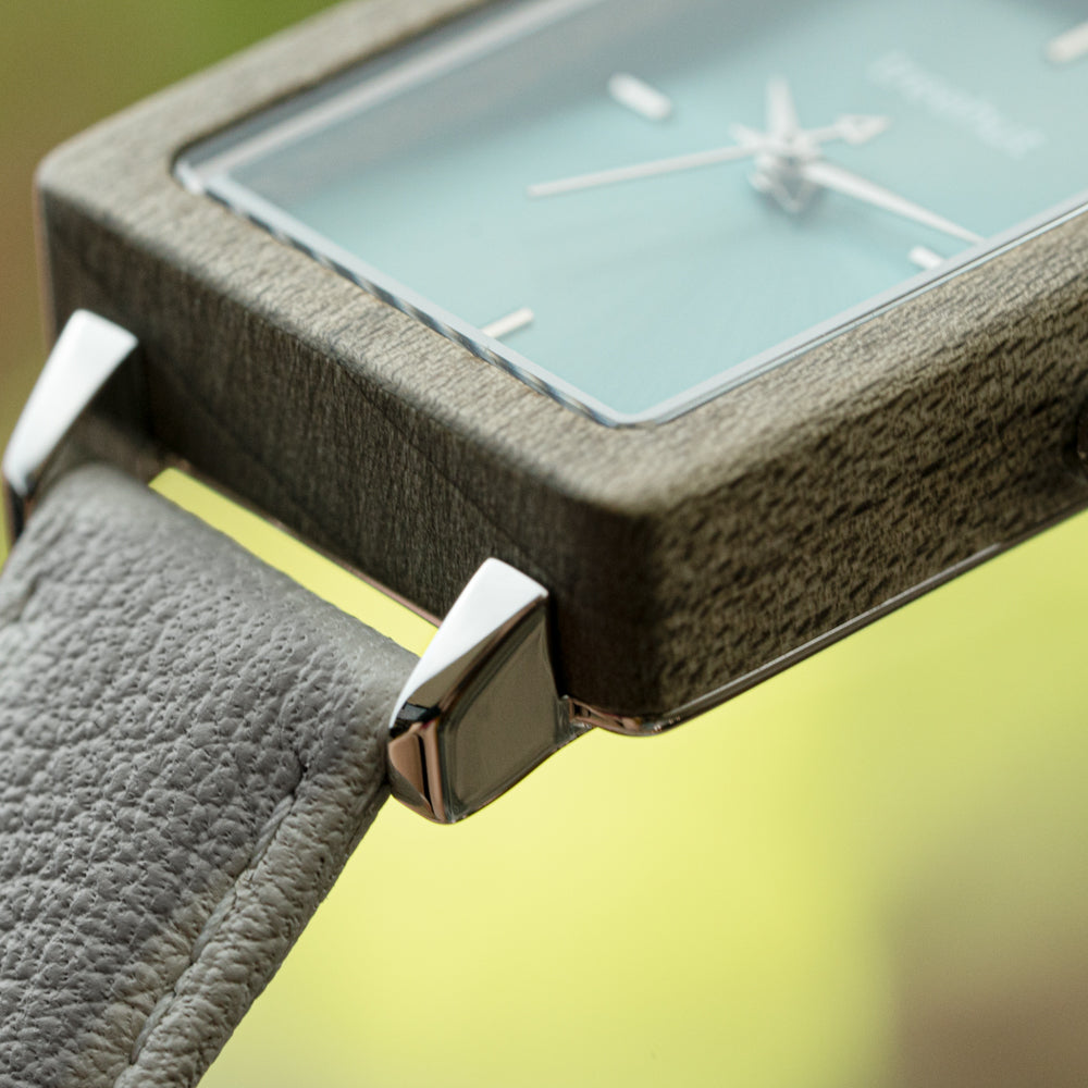 Break away from the standard round case with the Lola Silver Maple Leather Blue – a refined addition to the world of silver watches for women. Its contemporary rectangular design frames an icy light blue dial without numbers, giving it a clean, airy feel. The natural maple wood bezel adds a warm, organic touch that contrasts beautifully with the cool silver accents.