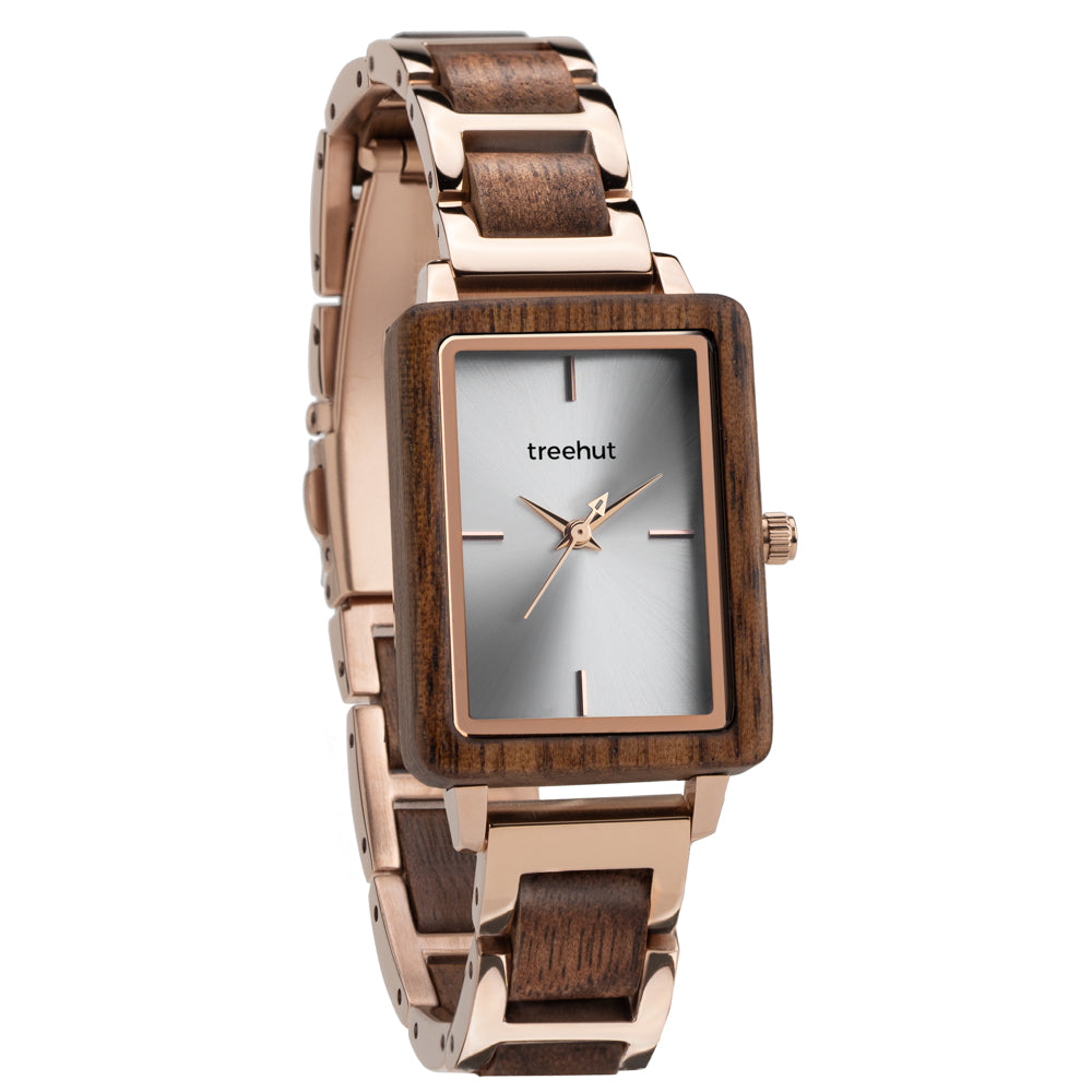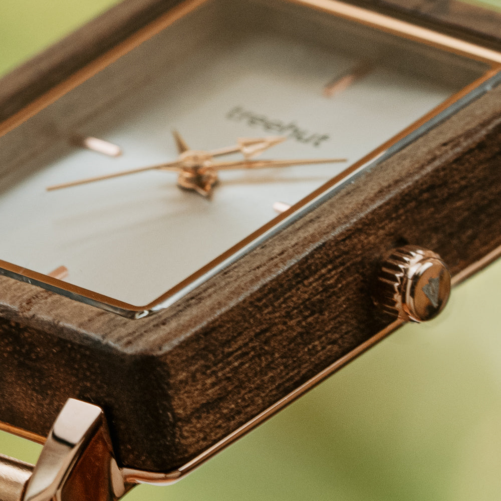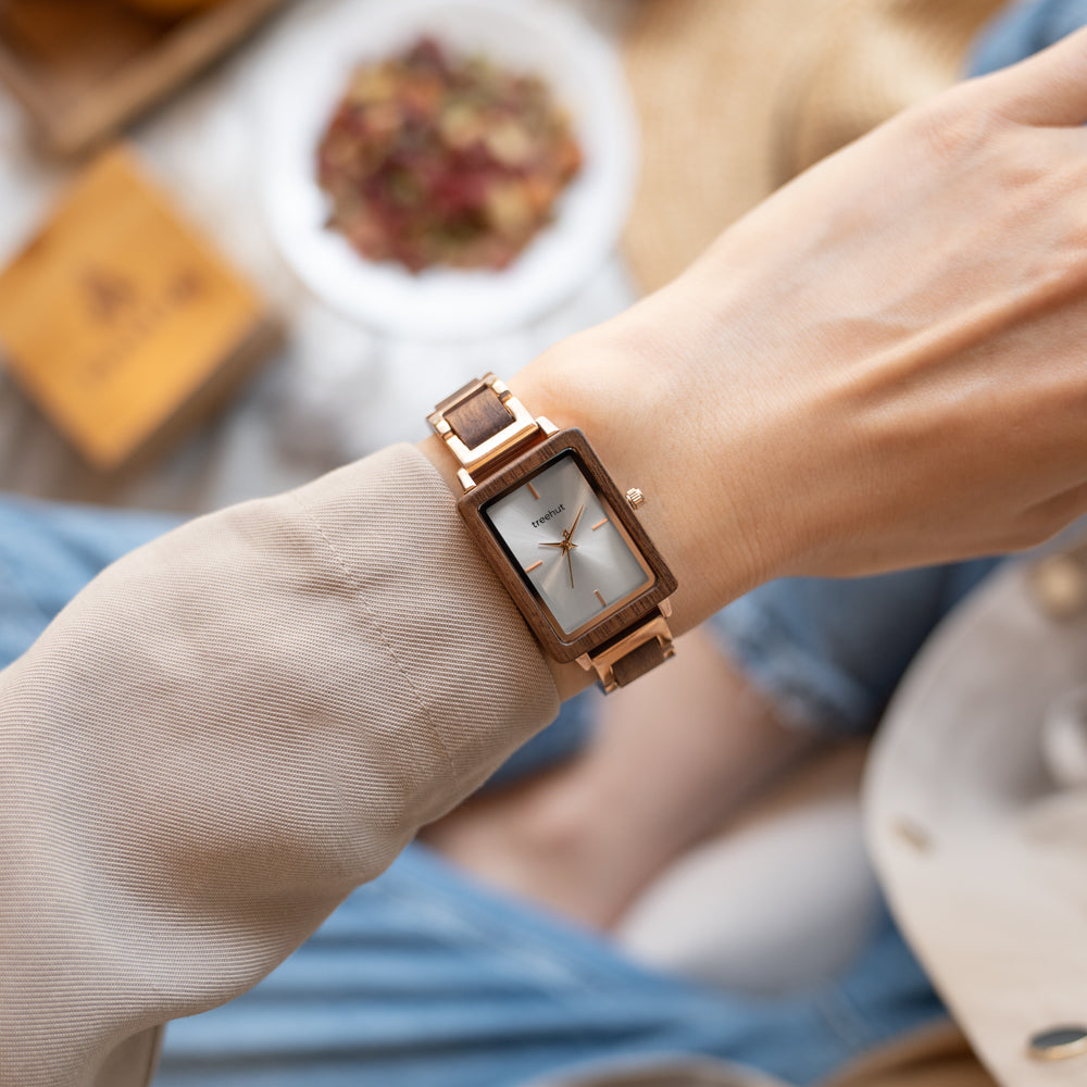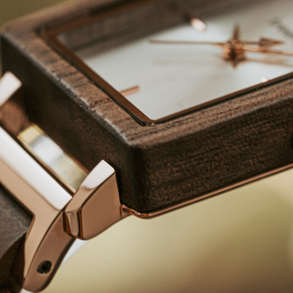 Step away from the ordinary with the Lola Walnut Rose Gold – a rose gold watch for women that blends soft femininity with modern design. Its rectangular case creates a contemporary silhouette, while the clean white dial and rich walnut wood details add warmth and balance.