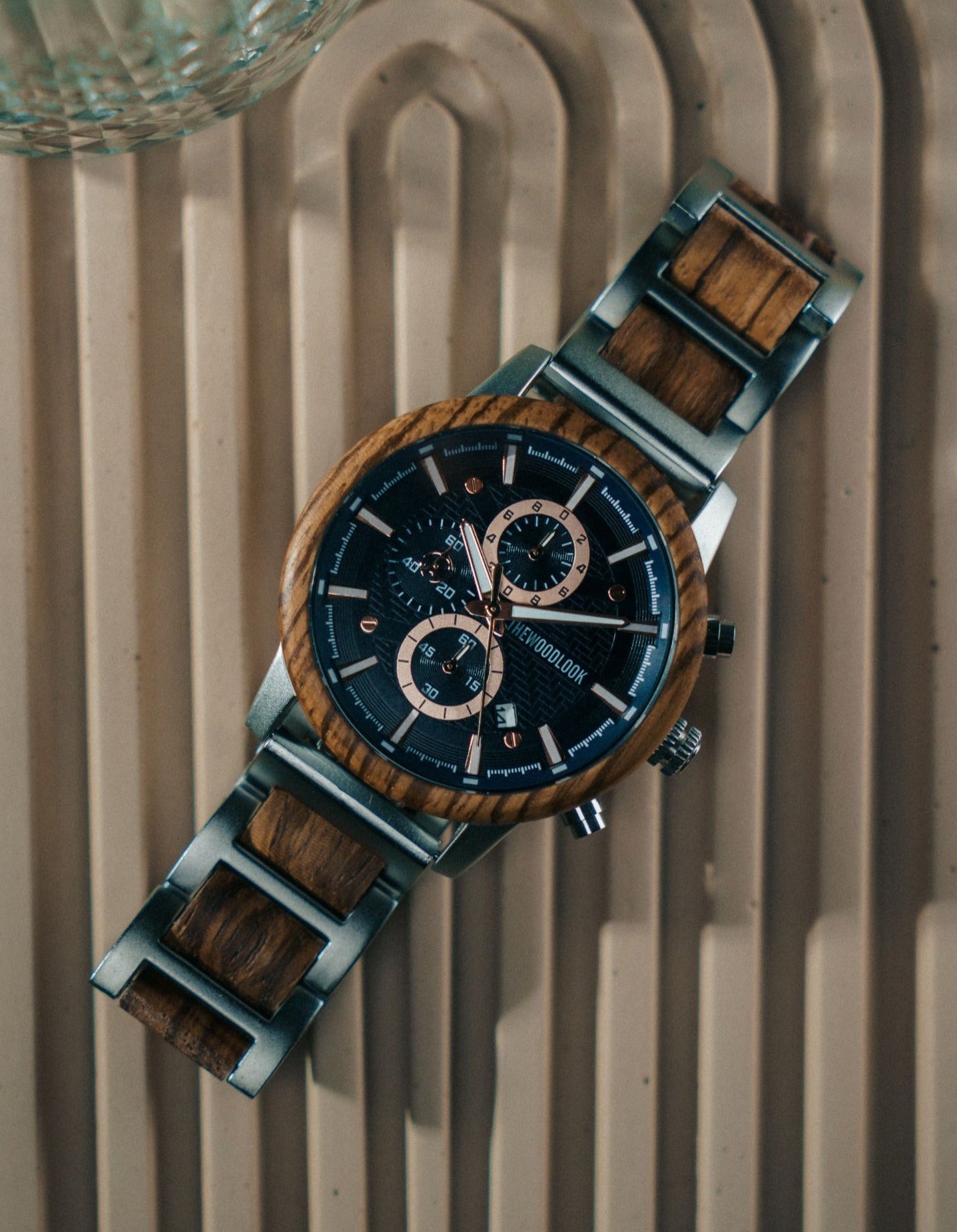 The London edition blends wood and steel for modern luxury, featuring chronograph subdials within a hand-cut wooden frame and bracelet. The brown edition pairs silver zinc alloy with zebrawood, while the red edition showcases rich red sandalwood. With its refined craftsmanship and versatile design, it complements any outfit and fits various wrist sizes.