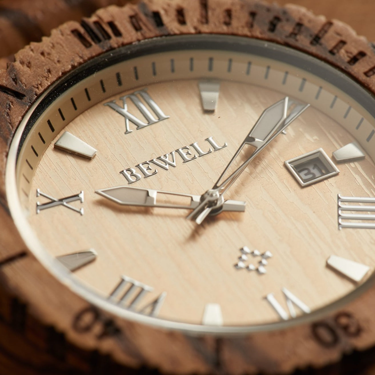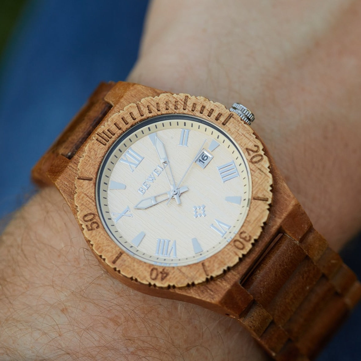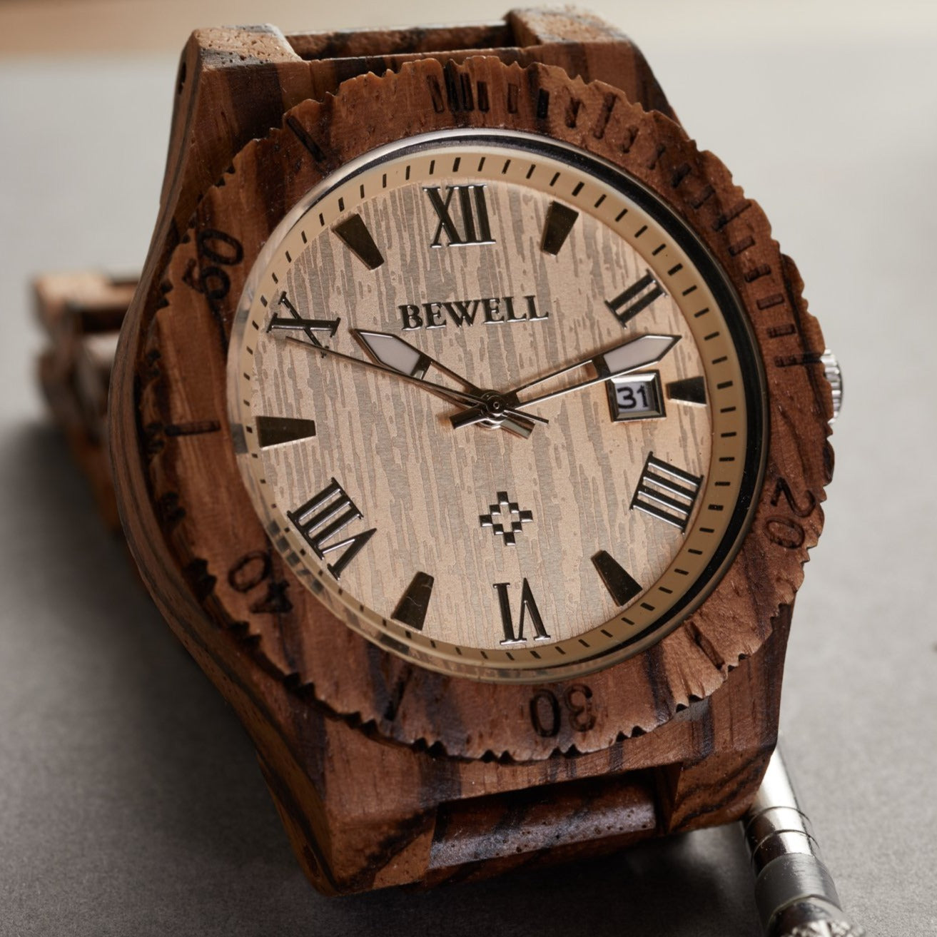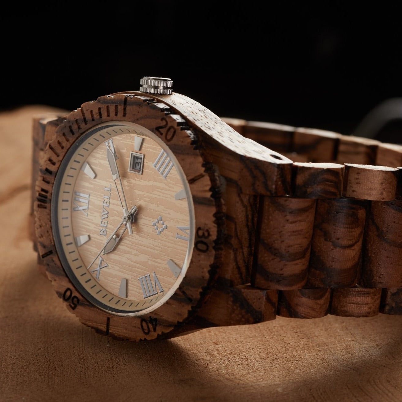 - Watch and watch band rendered in real wood