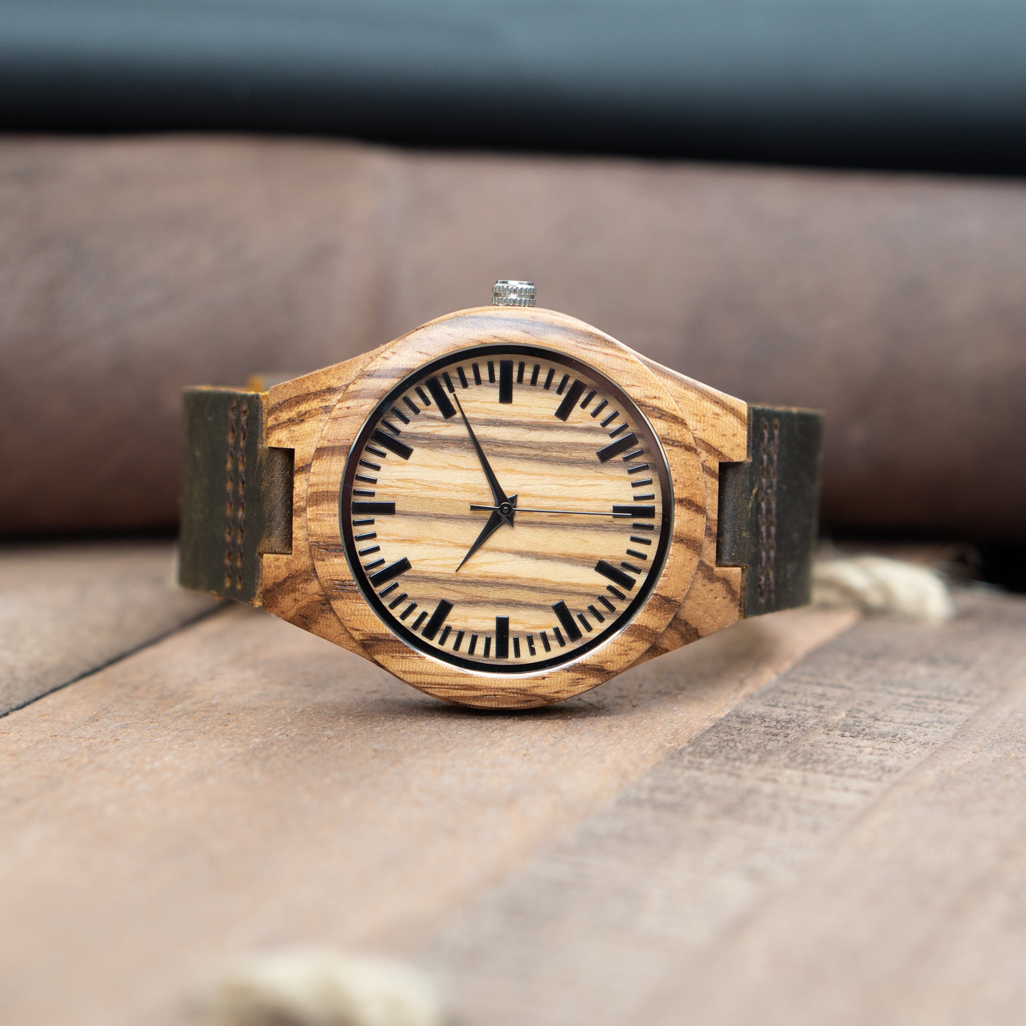 Rooted in simplicity, The Forest is the men’s wooden watch for those who appreciate the quiet beauty of natural materials. The classic warm-toned wood case pairs effortlessly with a rich brown leather band, creating a timeless combination that works for any occasion — from the boardroom to the trail.