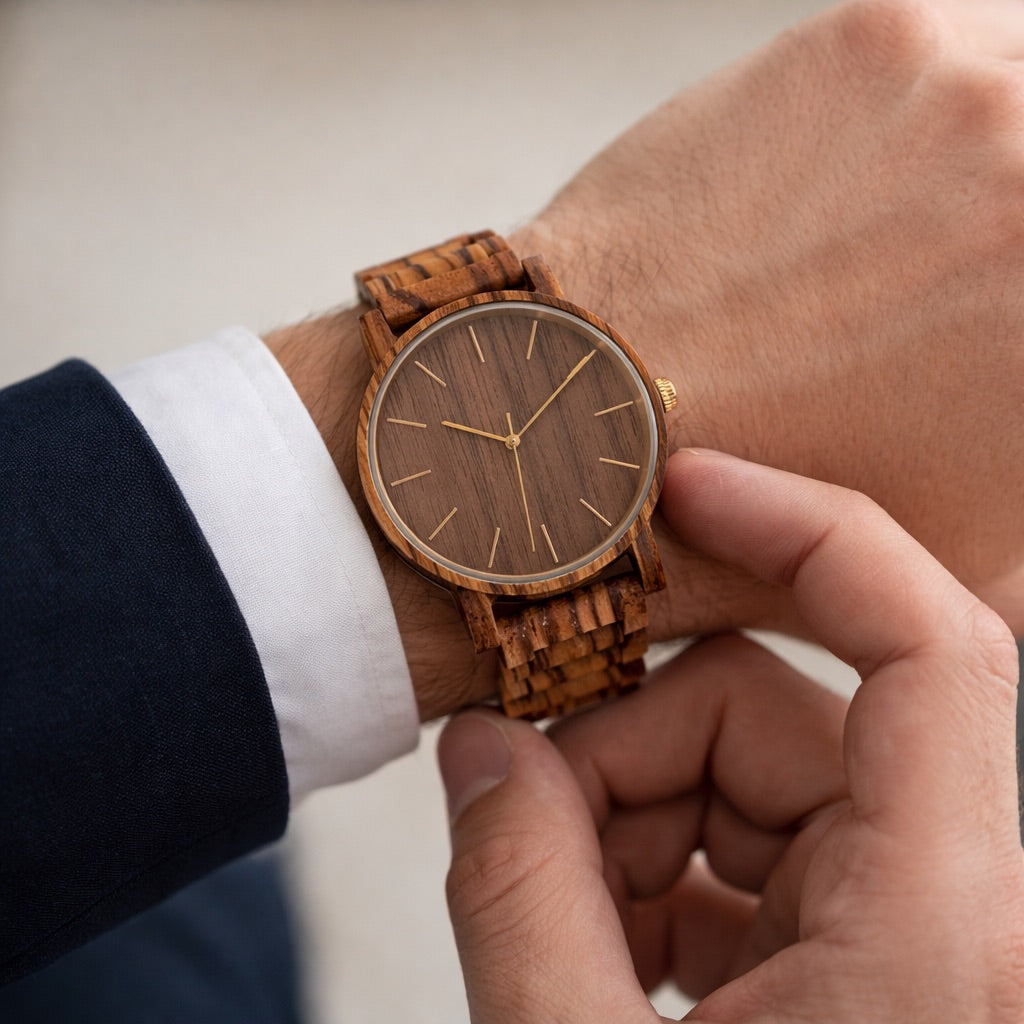 Built entirely from zebrawood, The Bryce is lightweight and comfortable for everyday wear while making a strong style statement. It’s a natural conversation starter — and with personalized engraving on the case back, it becomes an unforgettable gift for groomsmen, graduates, or fathers.