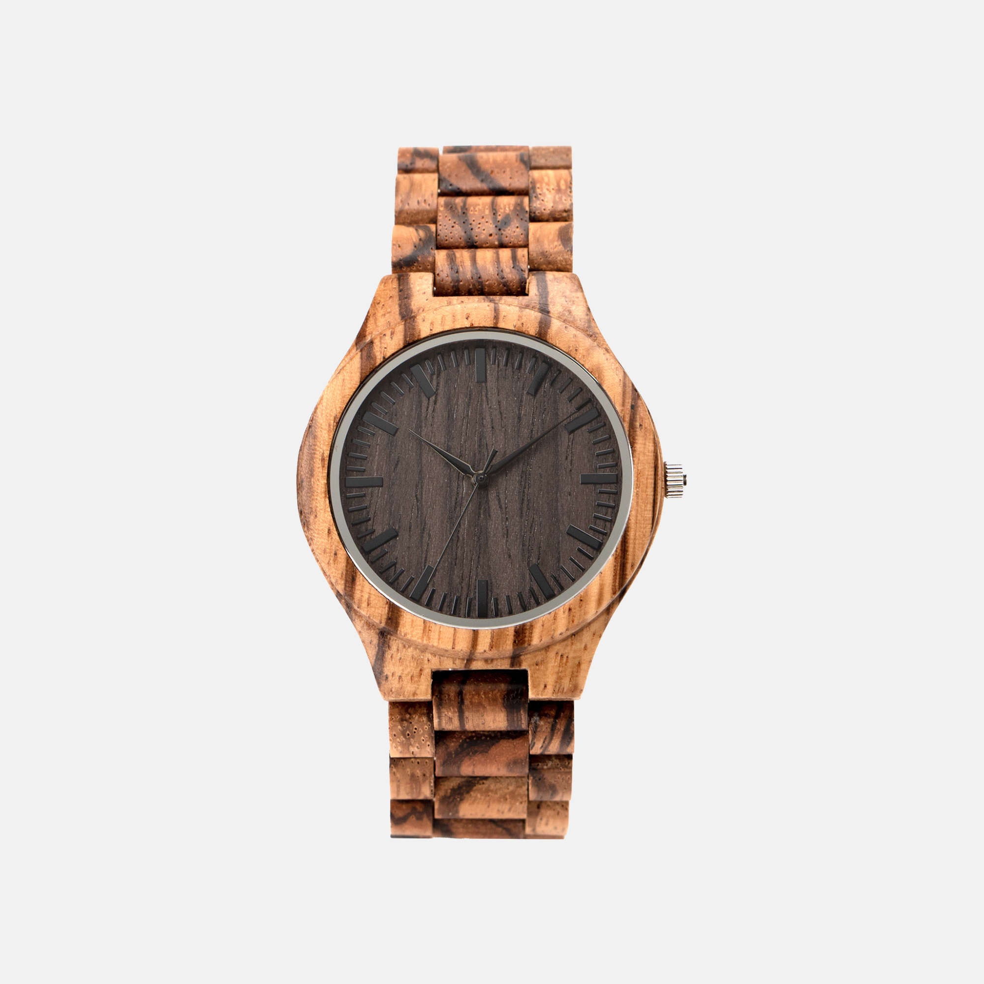 Rise above the ordinary. The Phoenix is a men’s wood watch that carries the energy of its legendary namesake — bold, enduring, and impossible to ignore. The all-natural wood construction pairs a striking hardwood case with a matching wood band, and the grain pattern gives this watch an intensity that elevates it beyond the usual nature-inspired look.