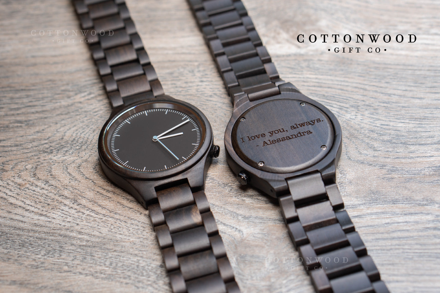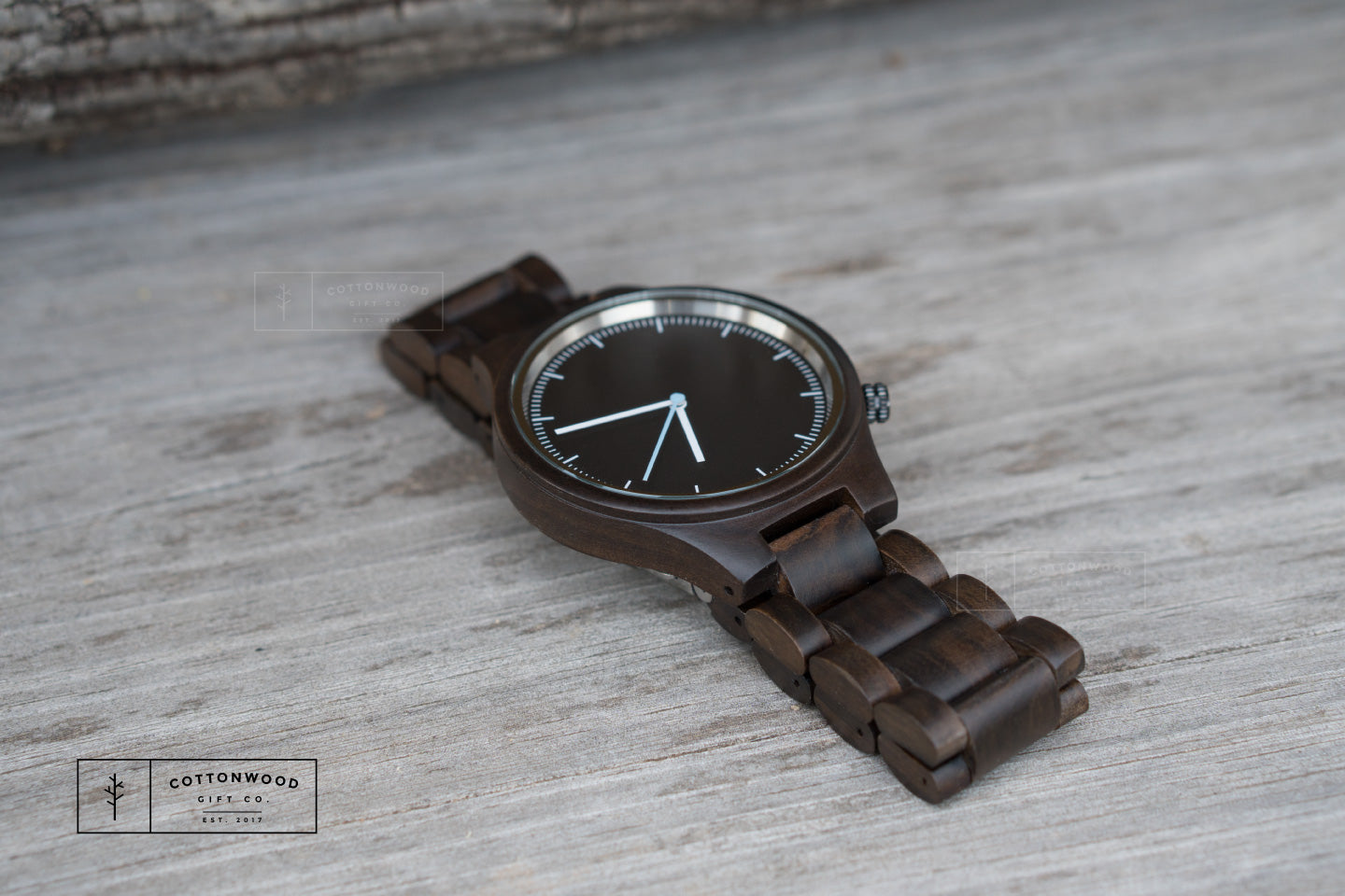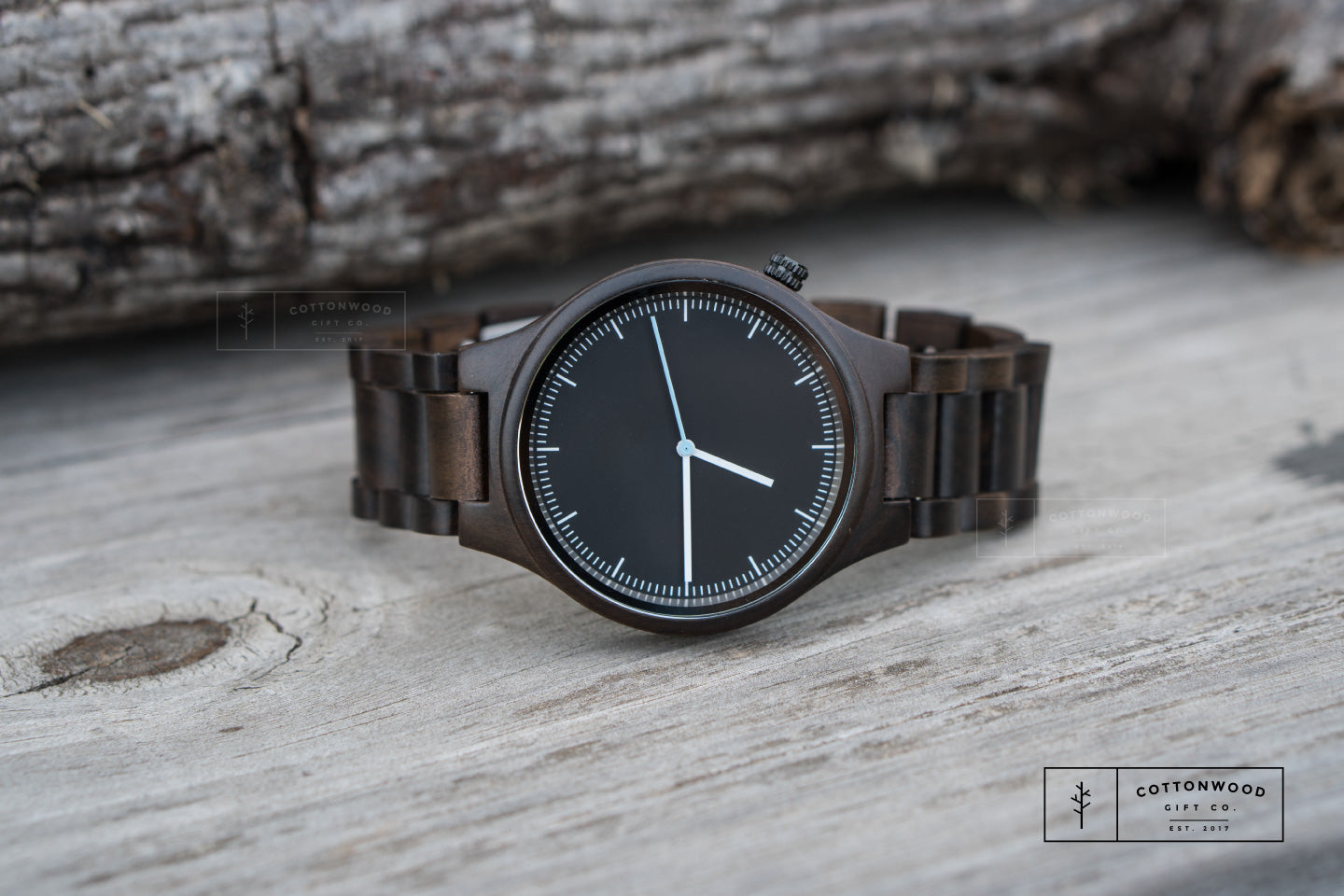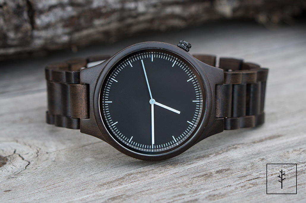The River is a natural choice for men who lean toward darker aesthetics and want a wood watch that feels substantial and mature. The dark grain also makes engraving pop beautifully — personalize the case back with initials, a date, or a message to create a gift with real weight and meaning.