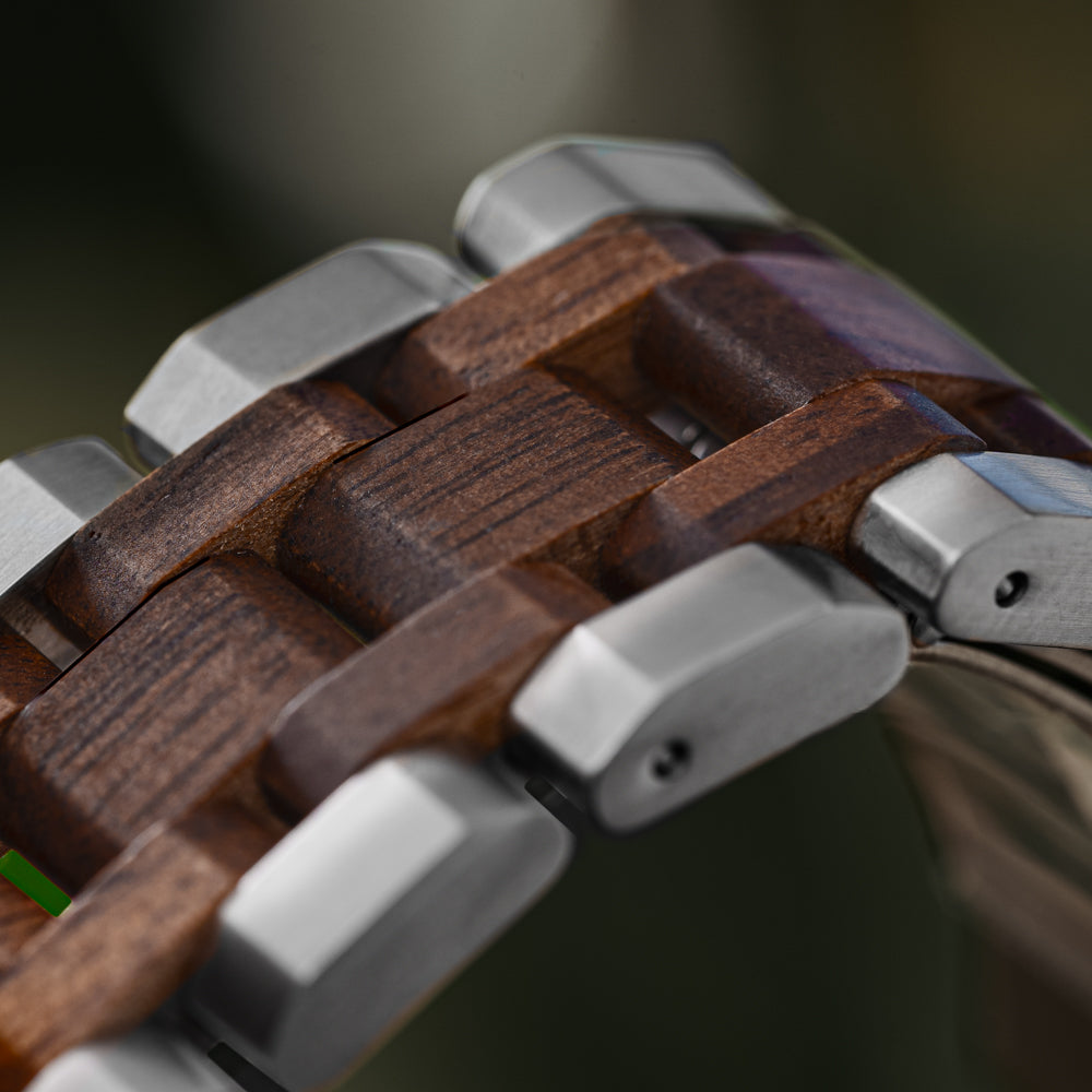 The Mission Collection delivers a rare mix of high-level design, technical precision, and sport-inspired character, making it a standout among men’s wooden watches. Powered by the Seiko VK64 hybrid chronograph movement, it combines quartz accuracy with mechanical features like a sweeping seconds hand and instant reset, offering watch enthusiasts a true performance piece.