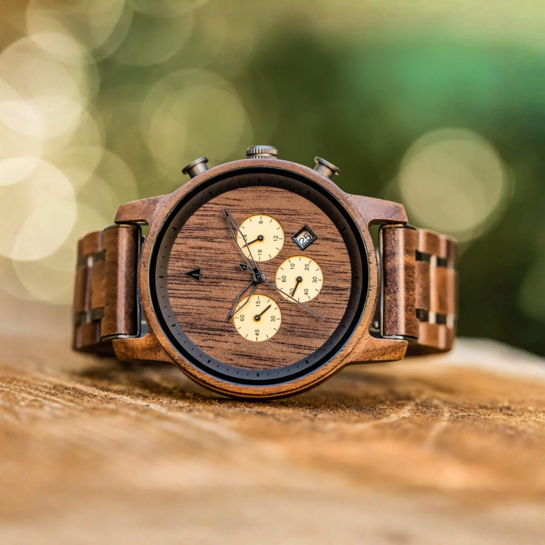 As a bold chocolate brown watch with a natural edge, this piece speaks to those who want both functionality and personality. It remains one of Treehut’s most versatile picks for anyone seeking a brown wood watch for men.