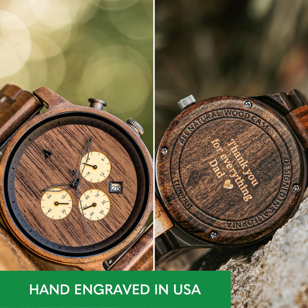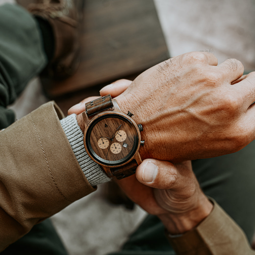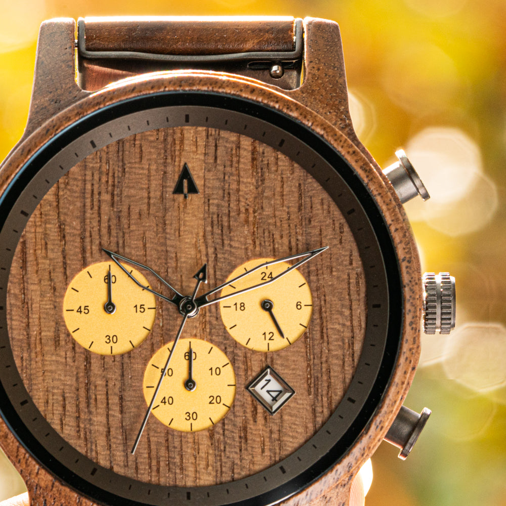 Discover the North. Inspired by our rugged Northern California coast, the North Collection blends natural strength with elevated style. This brown wood watch for men is Treehut’s signature take on the classic chronograph, reimagined in all-wood construction. It features smart, multi-function subdials on a clean, minimalist wooden dial – made for the man who values sophistication, confidence, and meaningful connection.