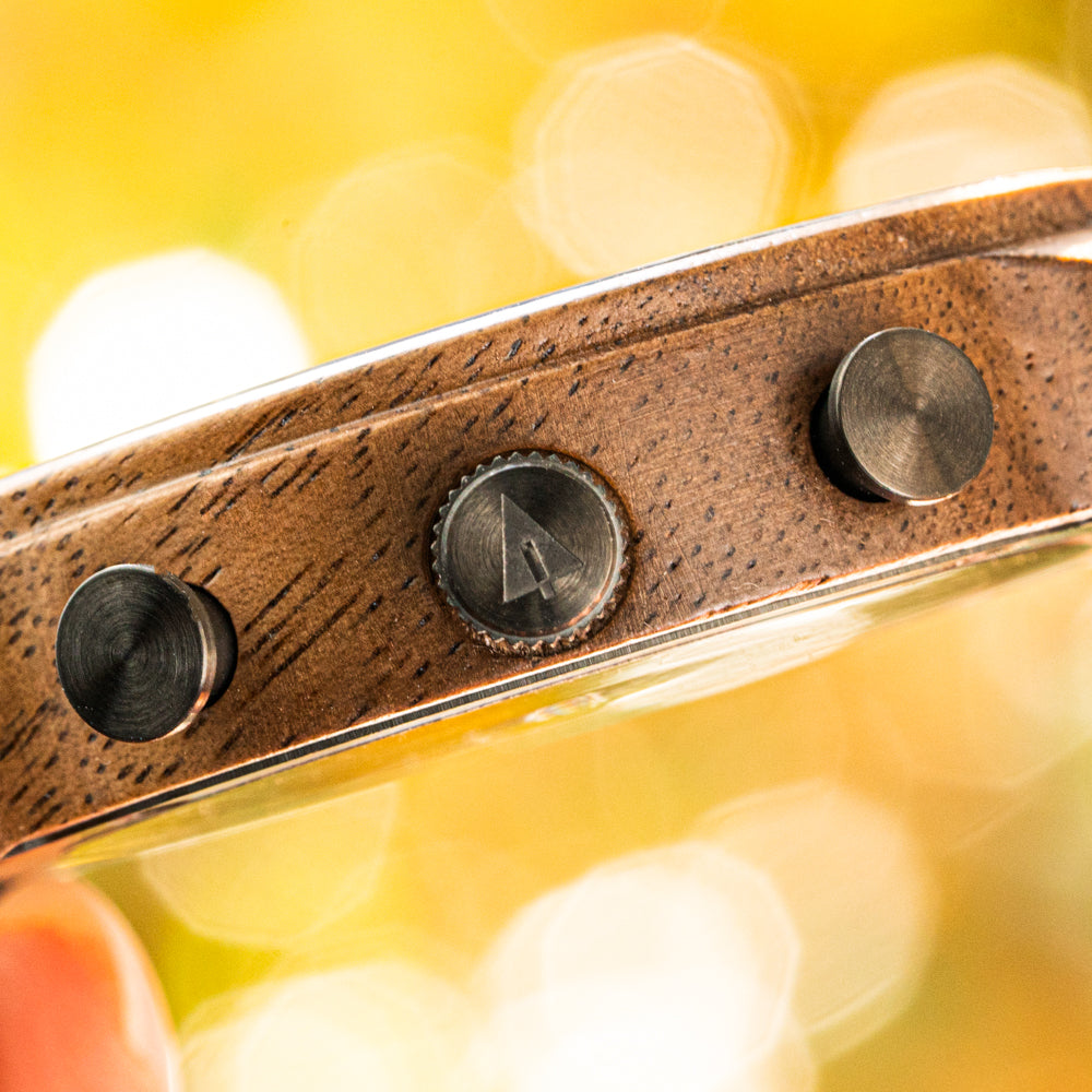 The North Chocolate Walnut Gold men’s chrono watch showcases a chocolate walnut wood dial, case, and matching band, all reinforced with gunmetal stainless steel. Its timeless silhouette makes it a standout men’s chocolate watch for both city streets and mountain trails. Classic chronograph functions and rustic textures meet sleek, interlinked design – lightweight and crafted for everyday wear.
