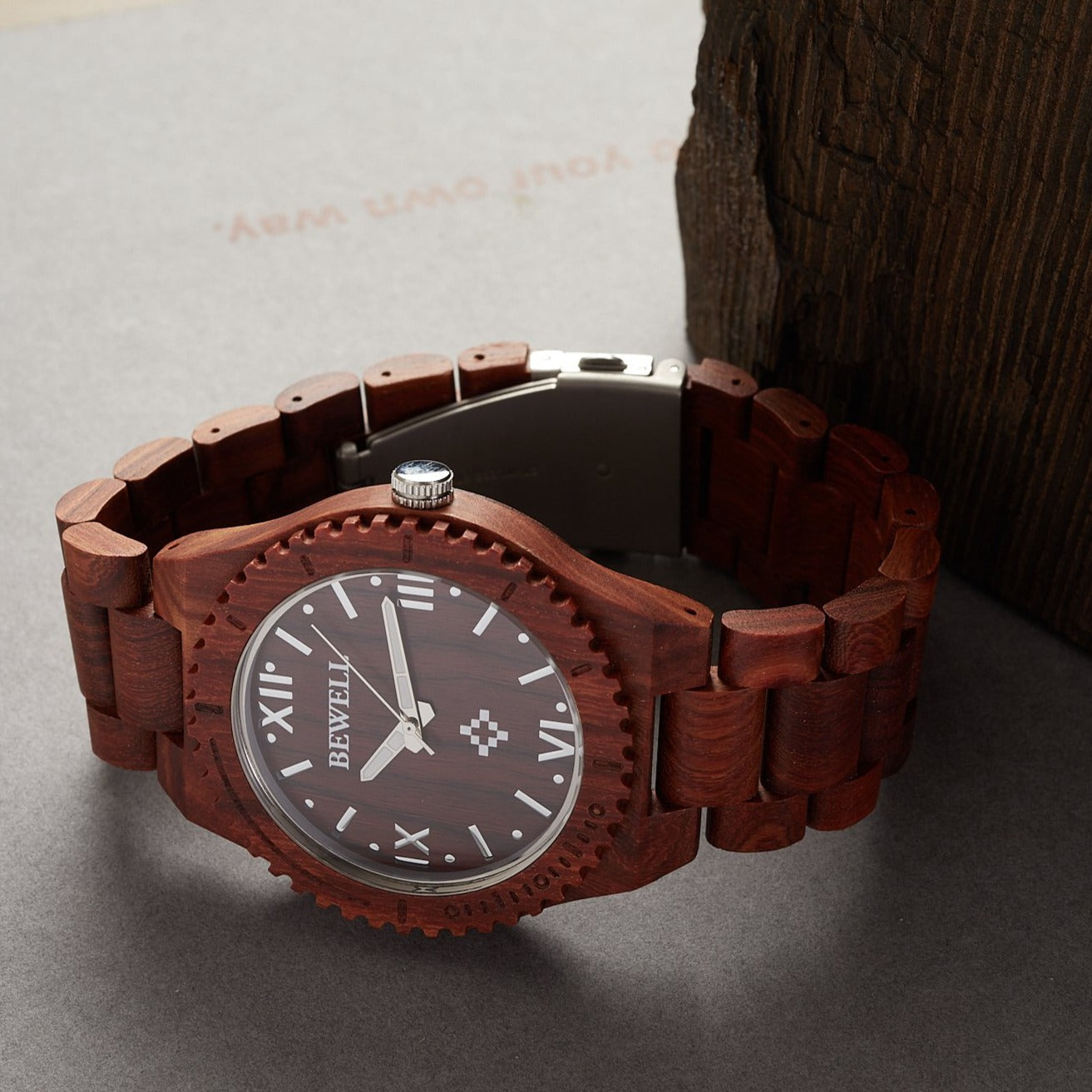 - Watch and watch band rendered in real wood