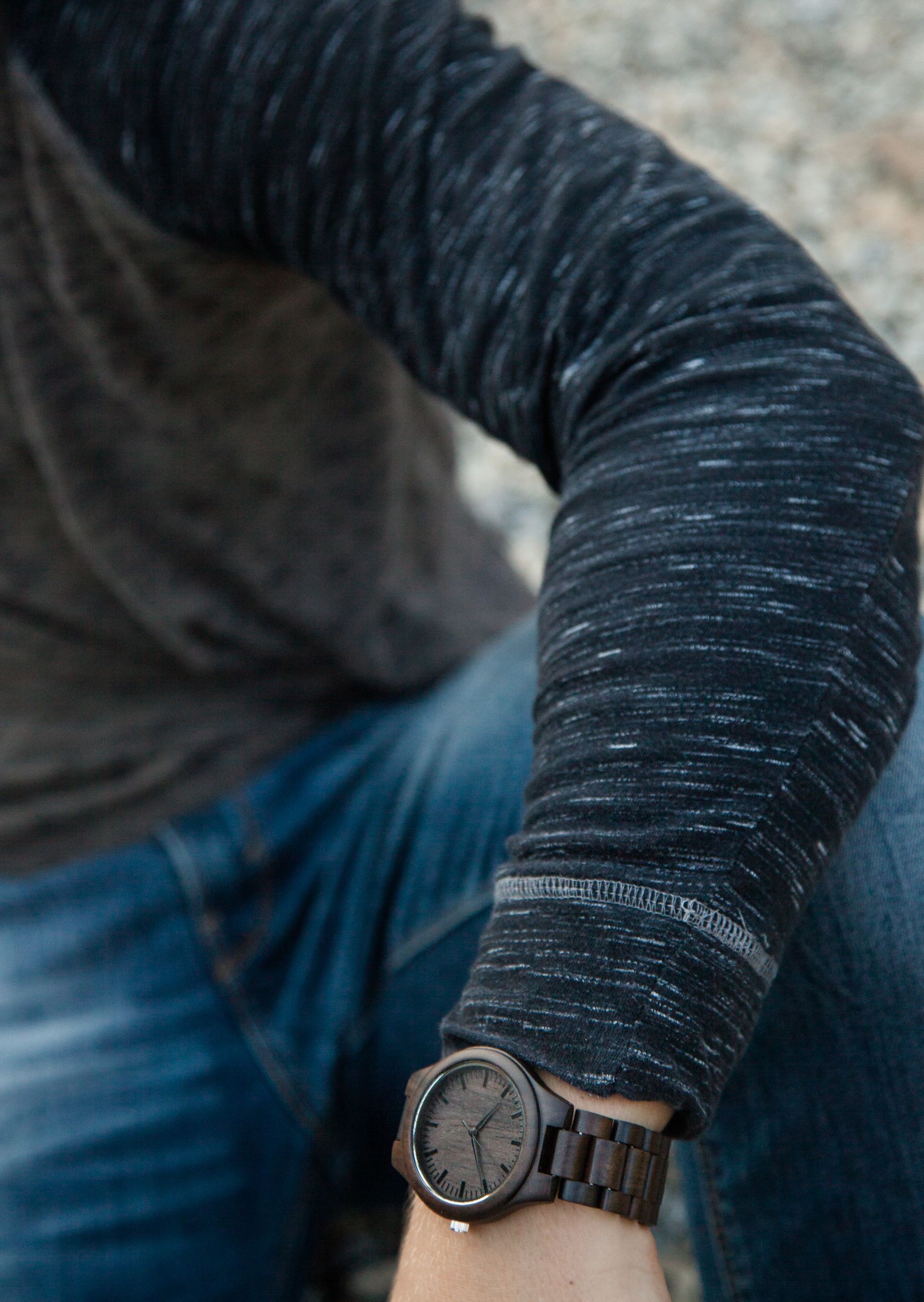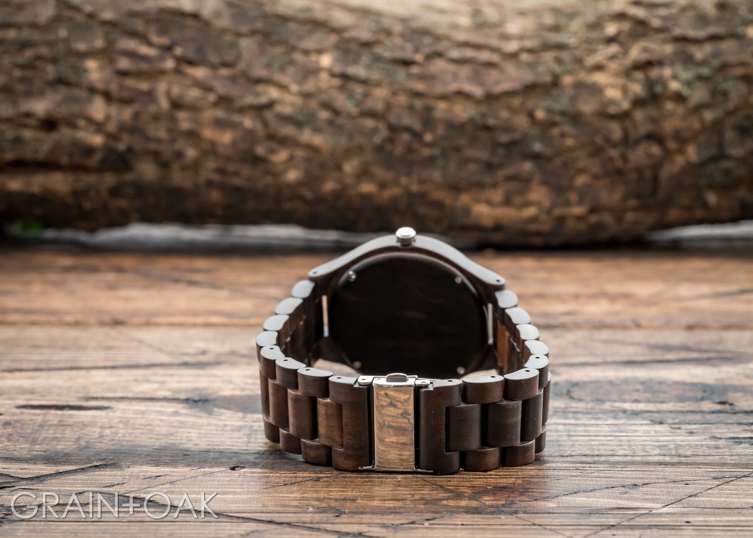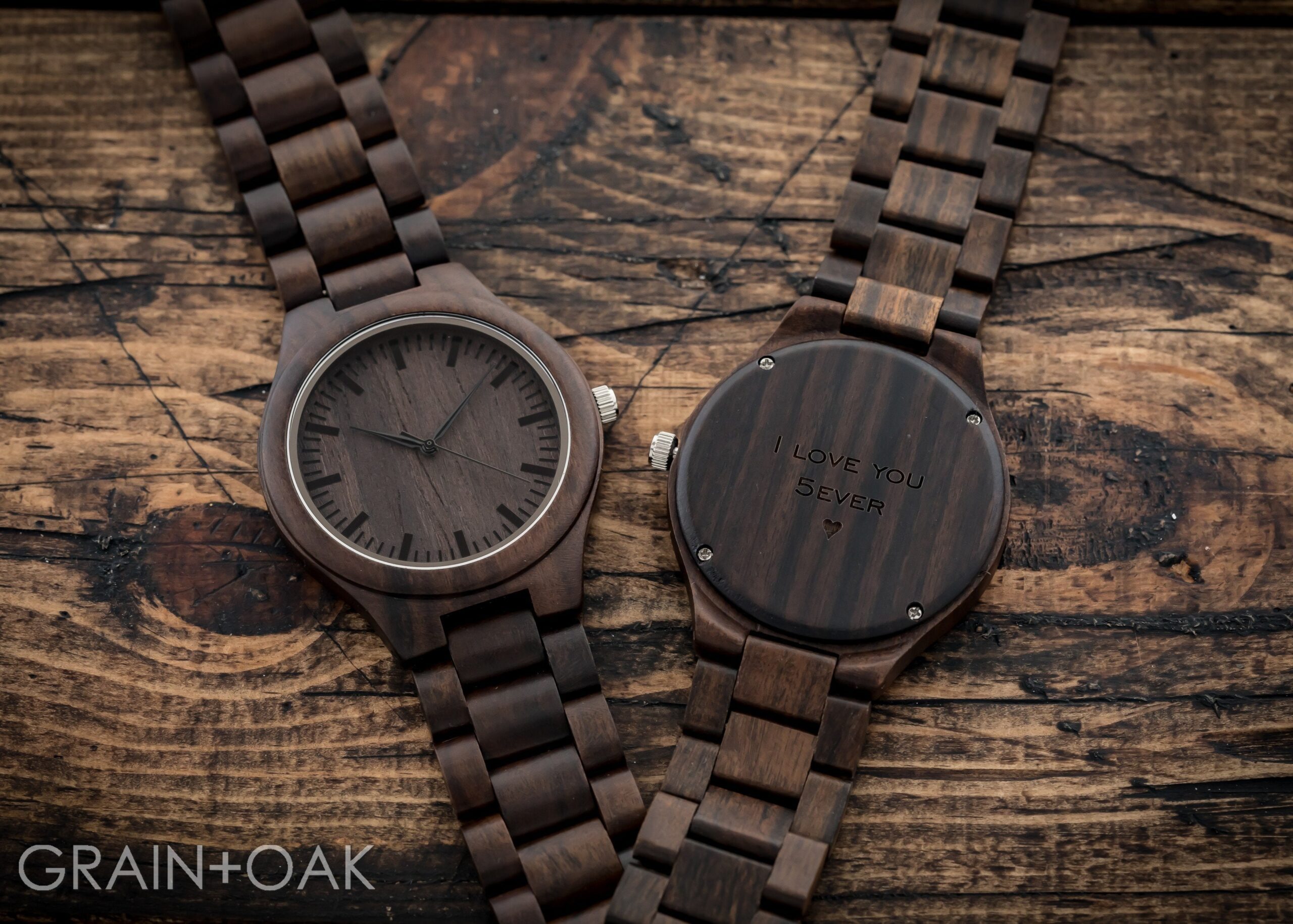 Whether you’re dressed up or paired down, the Ridge Ebony wooden watch offers timeless, practical style for any modern gentleman. Its smooth, rounded watch-case is the perfect way to add a touch of serenity to your everyday hustle. A bold 1-inch oyster wristband features lightweight wooden links for ultimate long wearing comfort. Superior design meets elite function with reliable quartz movement and a 1.75-inch watch face. Notched dial markers for the hour and quarter hour allow for greater time-reading precision, making it perfect for the busy modern gentleman. Add custom engraving to create the perfect gift for any occasion. For extra impact, upload a photo of your handwritten message to enhance the unique, handcrafted quality of your gift.