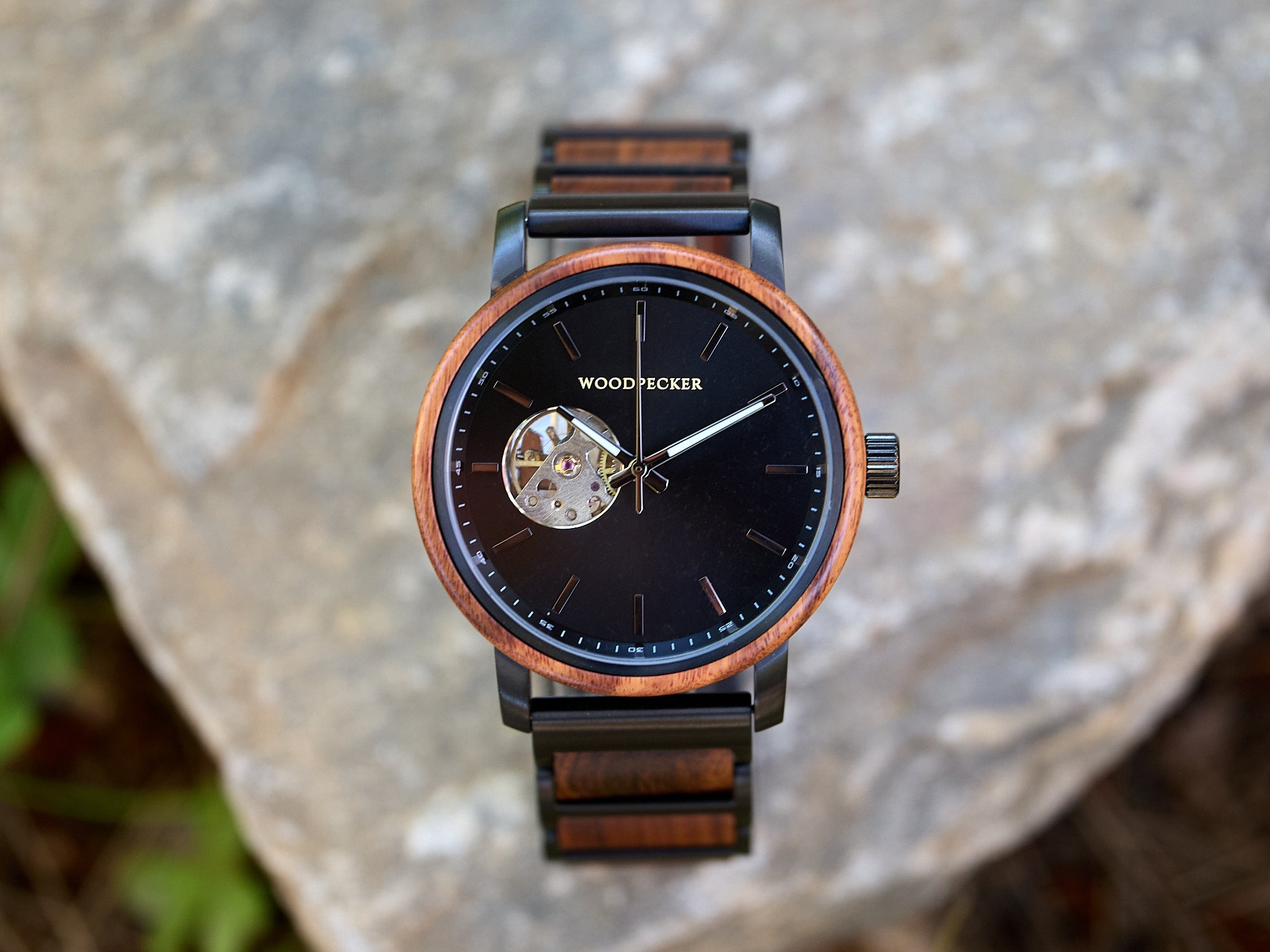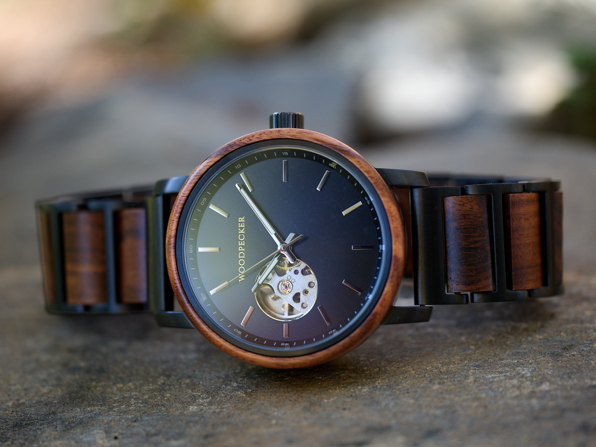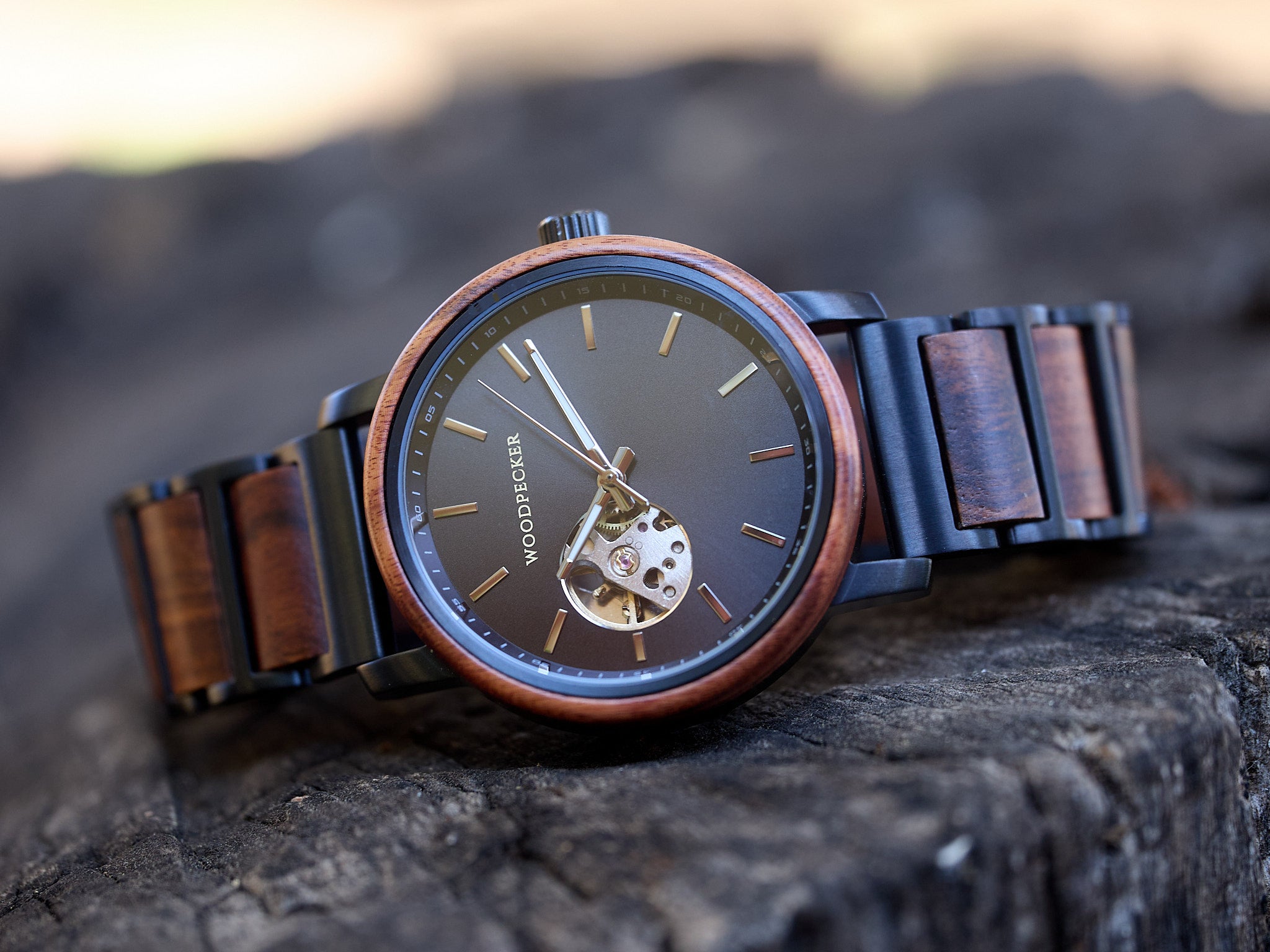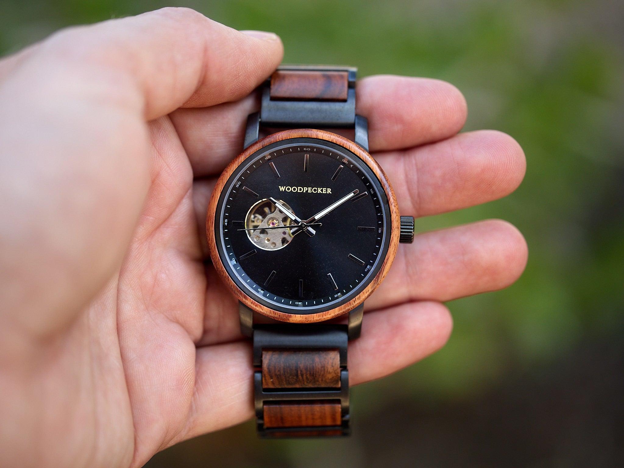 Crafted for men who appreciate the finer details, this Wooden Watch blends the natural warmth of tiger wood with the refined strength of stainless steel. Its automatic movement and captivating tourbillon design bring both precision and artistry to your wrist, while the see-through case back offers a mesmerizing view of the intricate movement inside.