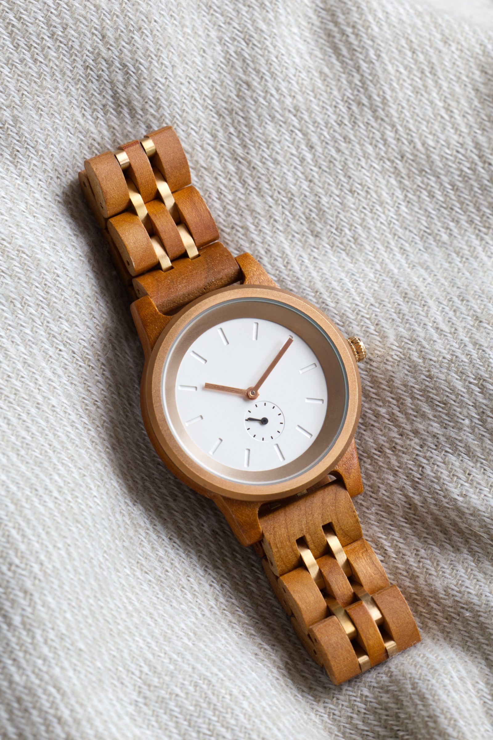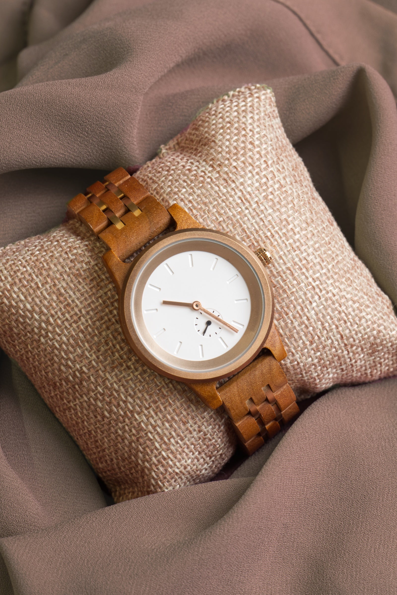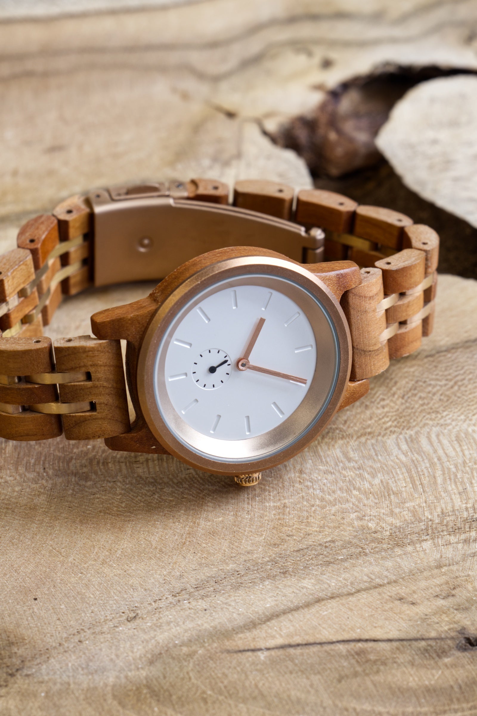 Inspired by the warm tones and timeless charm of Spain’s coastal city, the Valencia watch features rich cherry wood, a crisp white dial, and elegant copper stainless steel links. Its minimalist yet sophisticated design makes it a versatile accessory, perfect for any occasion. Lightweight and sustainable, this watch blends natural beauty with effortless elegance.