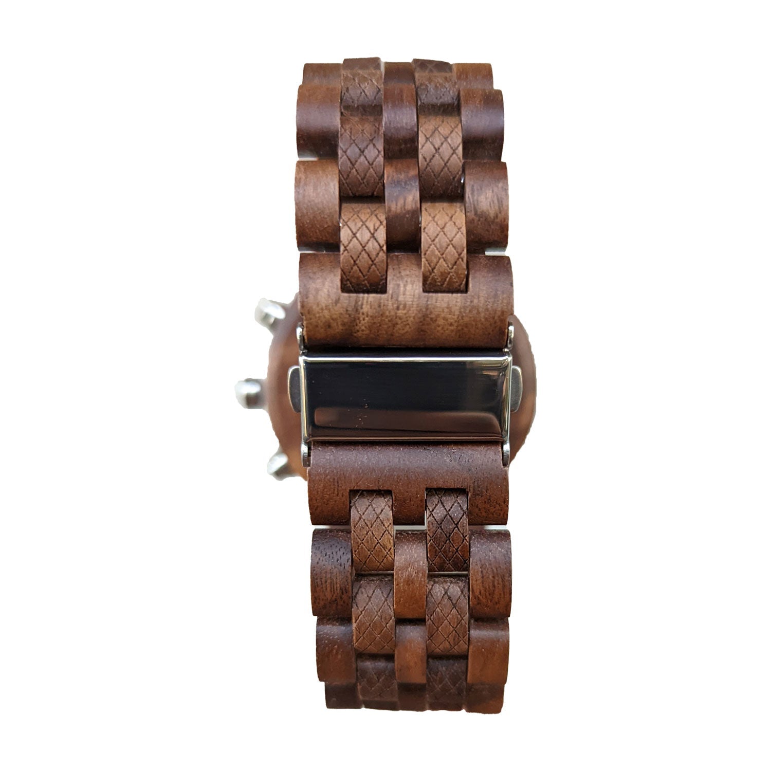 A wooden watch is not only durable but also stylish. This particular wooden watch comes with a large face which makes it easy to read at any time of day. It can be personalized by getting engraved with your own message on the back making it an excellent gift for someone special in your life! All our watches come shipped in their own individual box perfect for gifting.