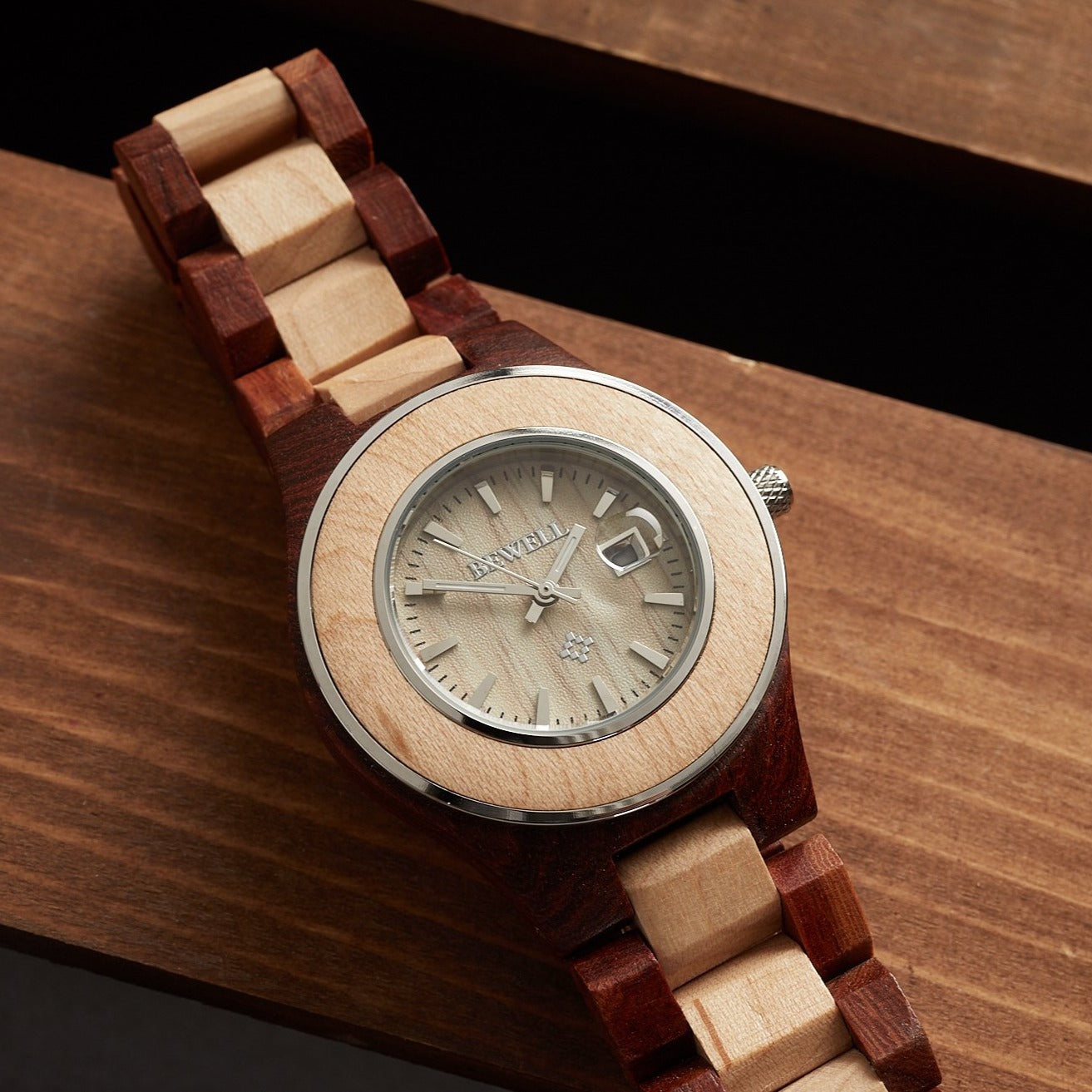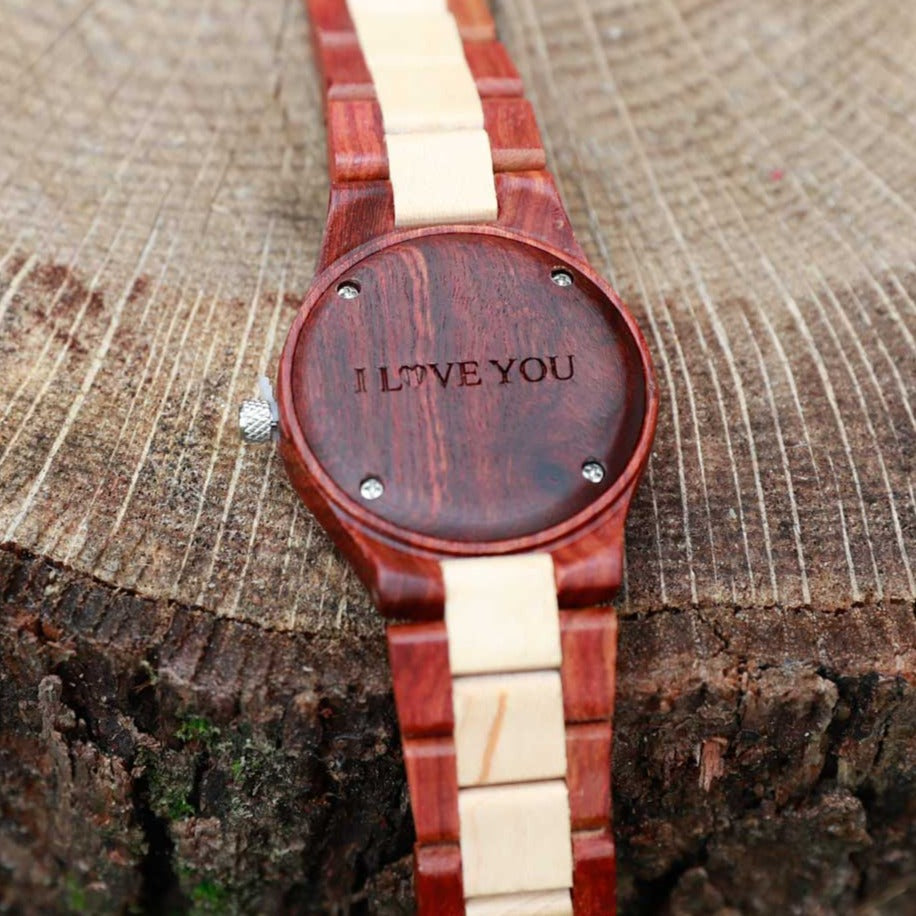 The Red Sandalwood and Maple Venus watch are made from 100% natural Red Sandalwood with 1.8 inches dial for men, 1.4 inches for women. Because the wood grain pattern is naturally different each time, every wood watch is different as well. This natural variation in wood grain is an attractive feature of these wooden timepieces that every possessor of these will feel the uniqueness of it.