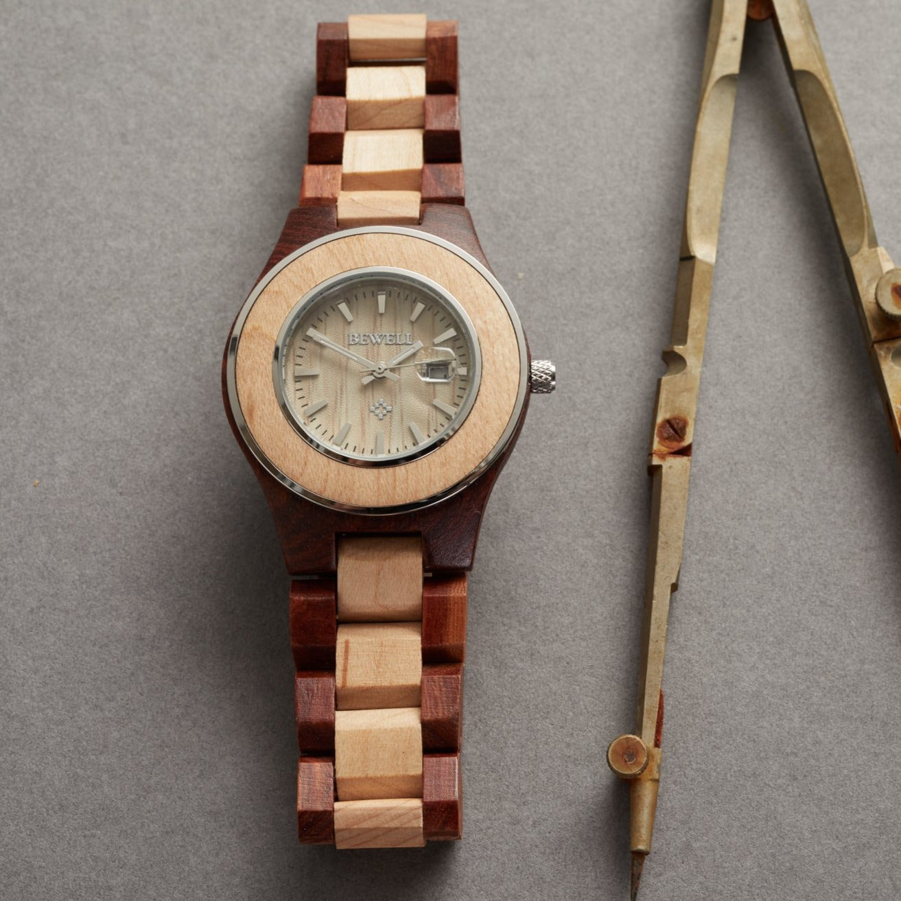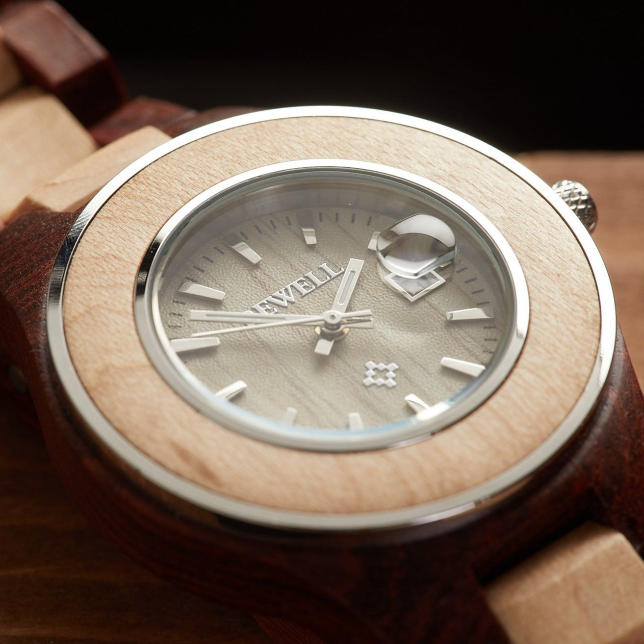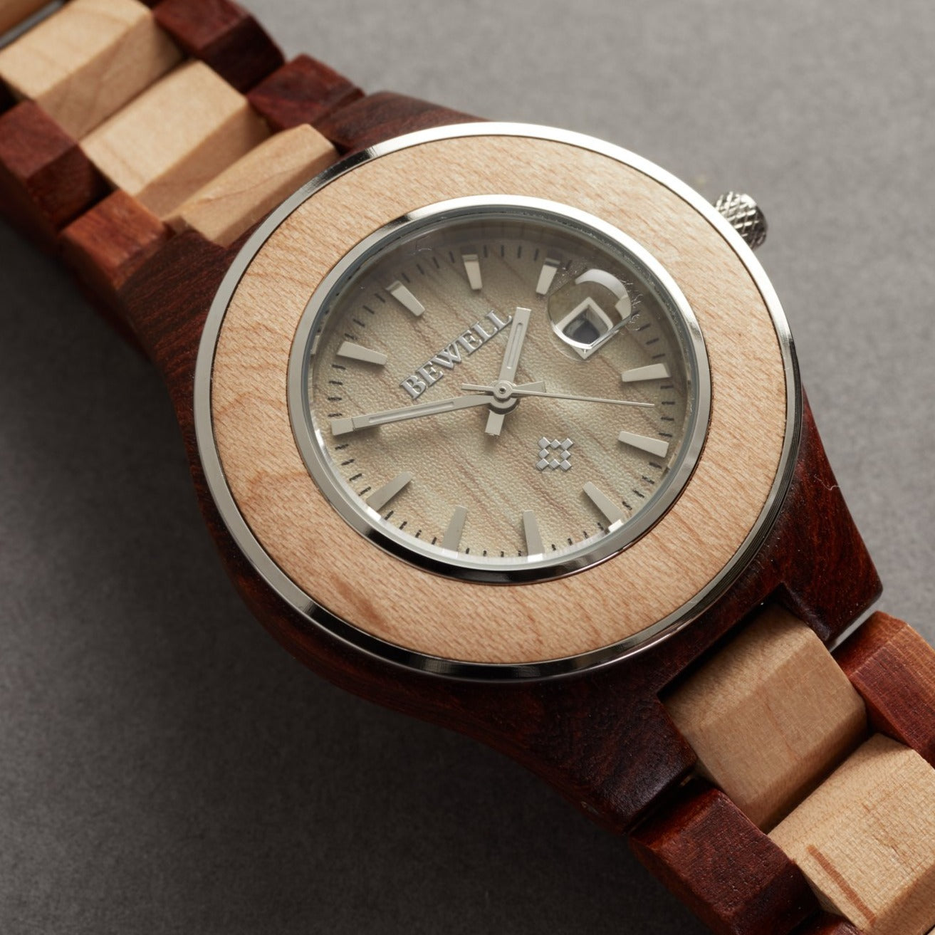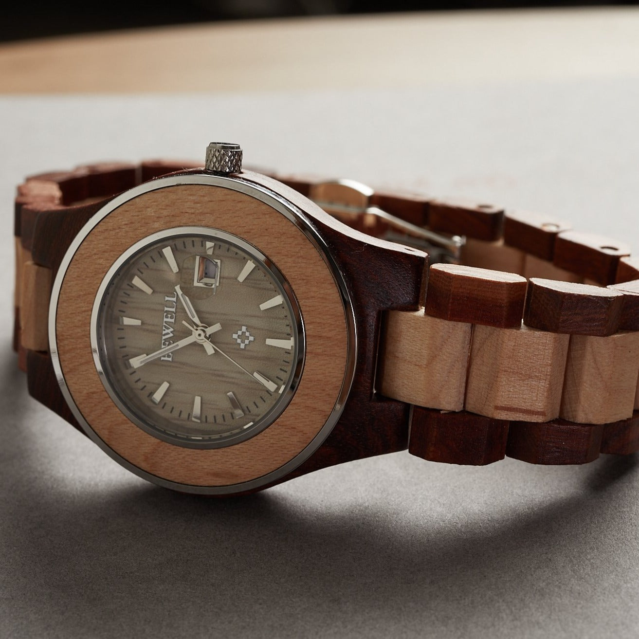 - Watch and watch band rendered in real wood